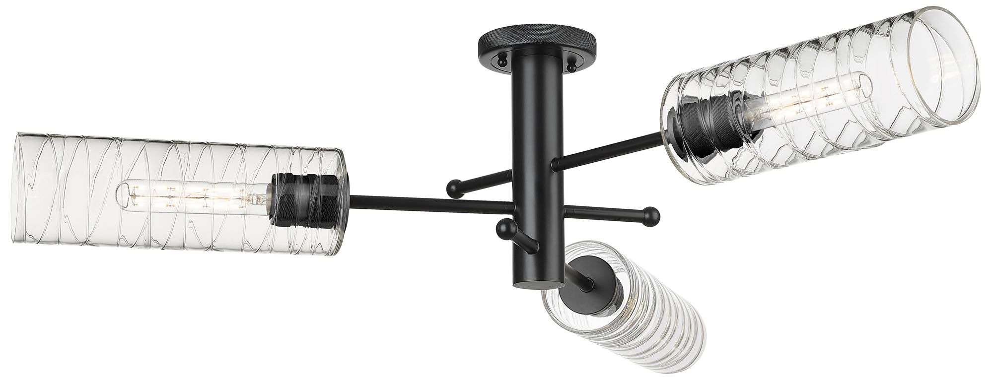 Crown Point 39.25"W 3 Light Matte Black Flush Mount With Deco Swirl Sh
