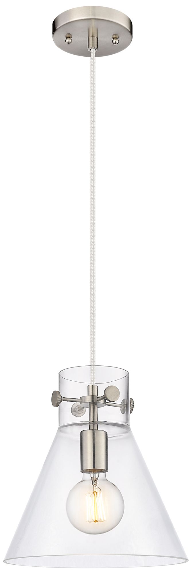 Newton Cone 10" Wide Satin Nickel Cord Hung Pendant With Clear Glass S