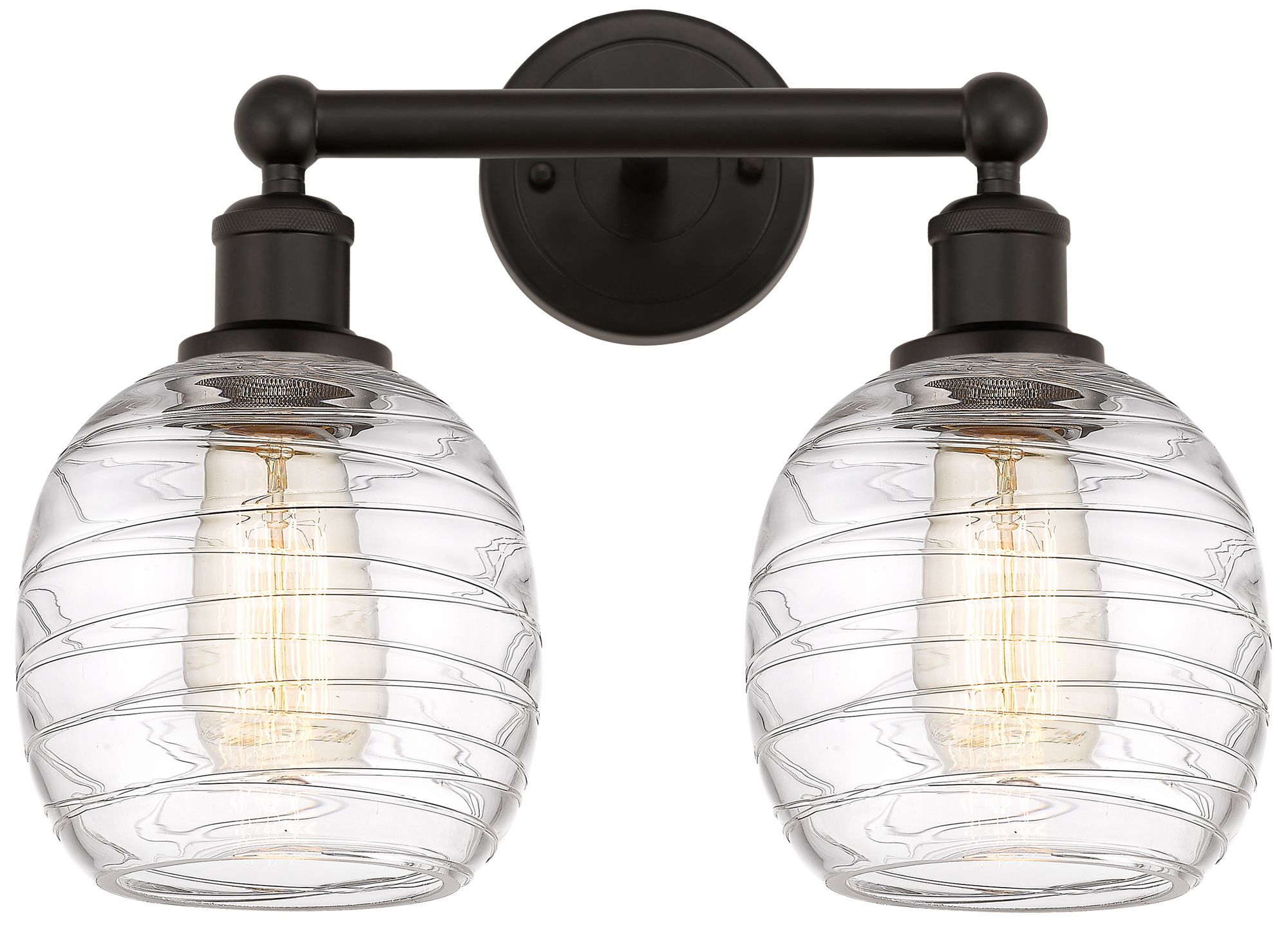Belfast 15" 2-Light Oil Rubbed Bronze Bath Light w/ Deco Swirl Shade