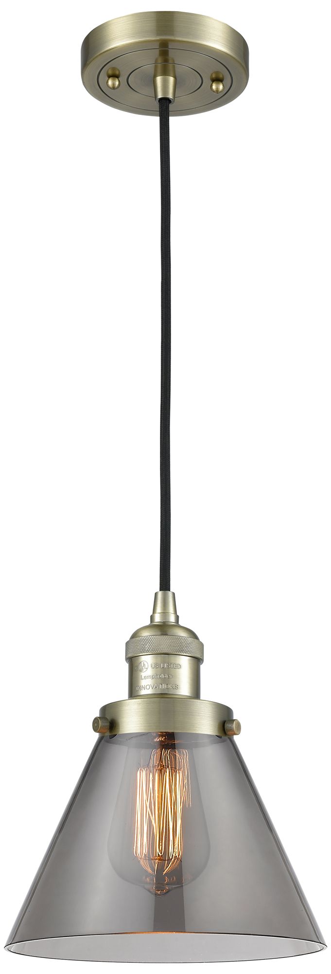 Franklin Restoration Cone 8" Brass Corded Mini Pendant w/ Smoke Shade