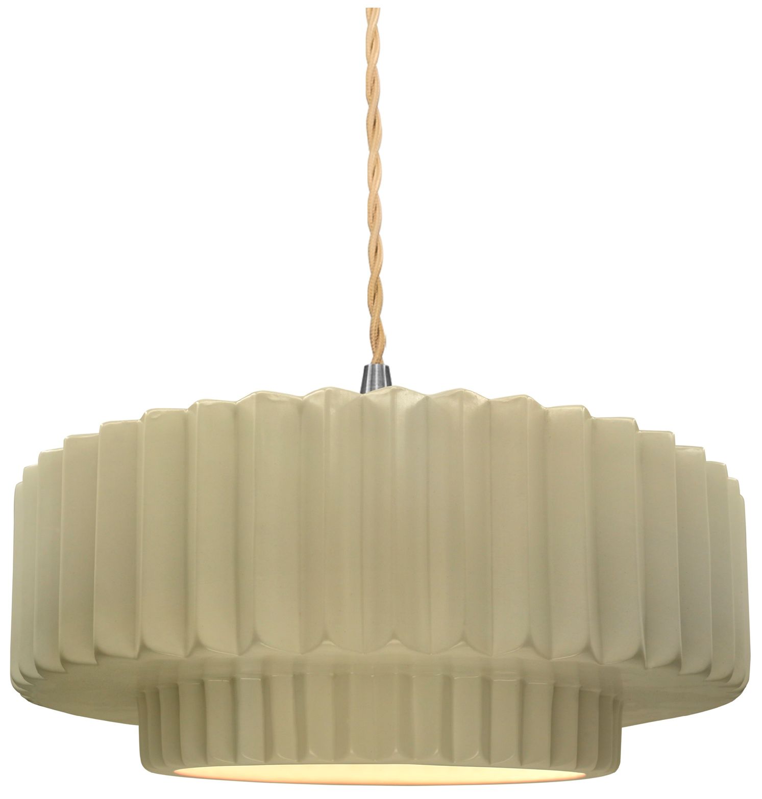 14.5"W Vanilla Gloss Frame Nickel Tier Pleated Beige Twisted LED Penda