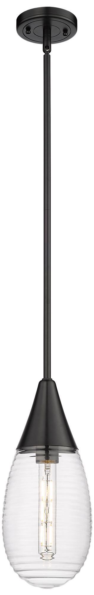 Malone 6" Wide Stem Hung Matte Black Pendant With Striped Clear Shade