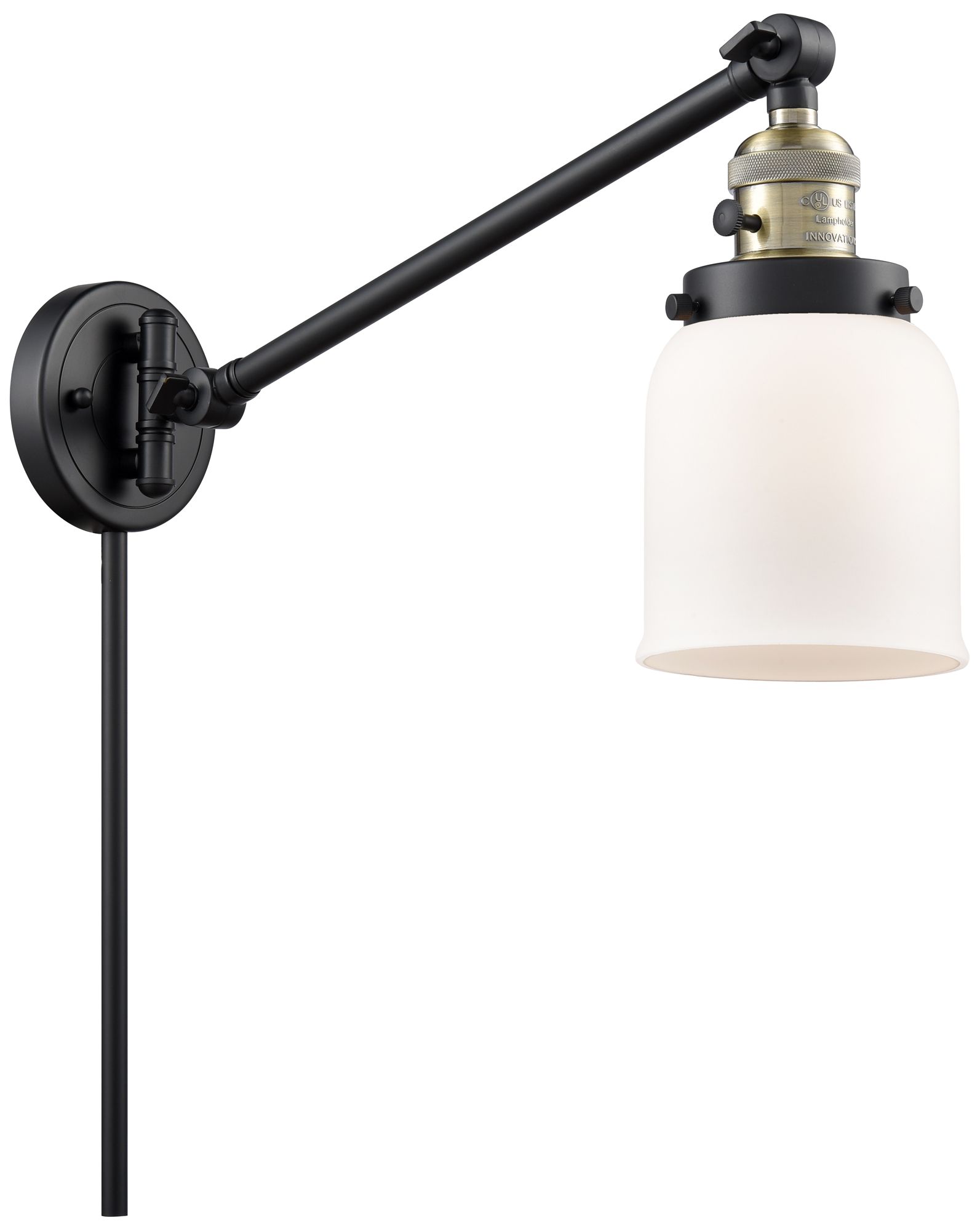 Franklin Restoration Bell 8" Black Antique Brass Swing Arm w/ White Sh