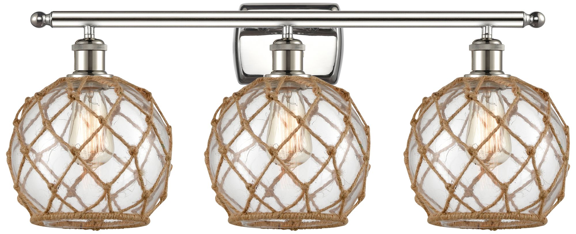 Farmhouse Rope 26"W 3 Lt Polished Nickel Bath Light w/ Clear & Bro