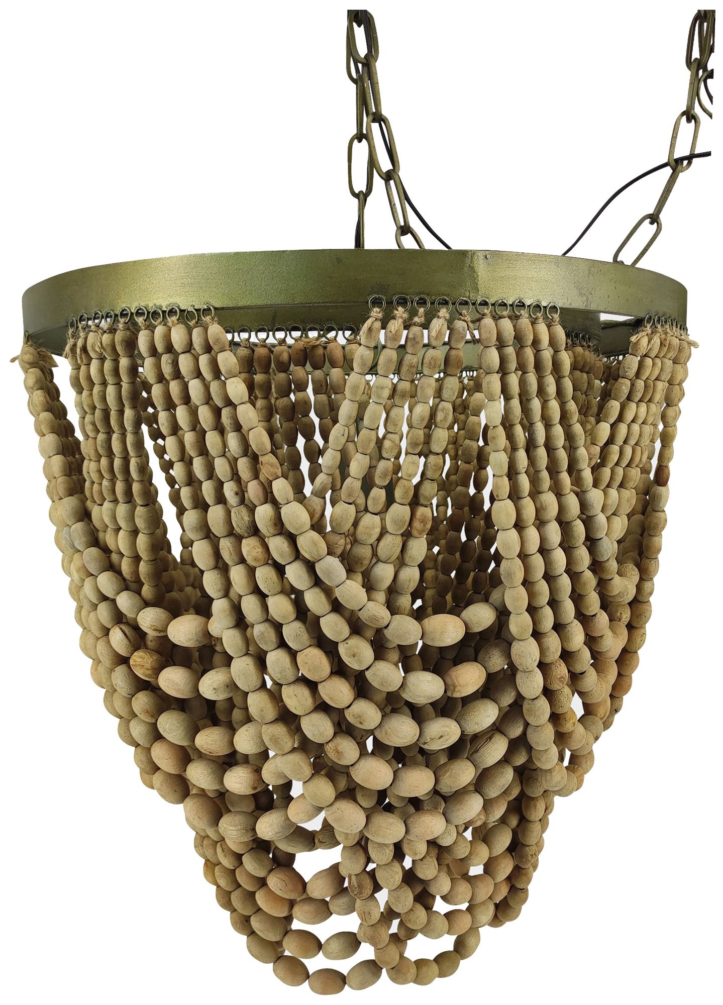 Saunders 19.8" Brass Metal Chandelier With Natural Wood Beads