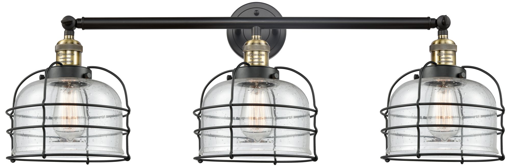 Franklin Bell Cage 34"W 3 Light Black Brass Bath Light w/ Seedy Shade