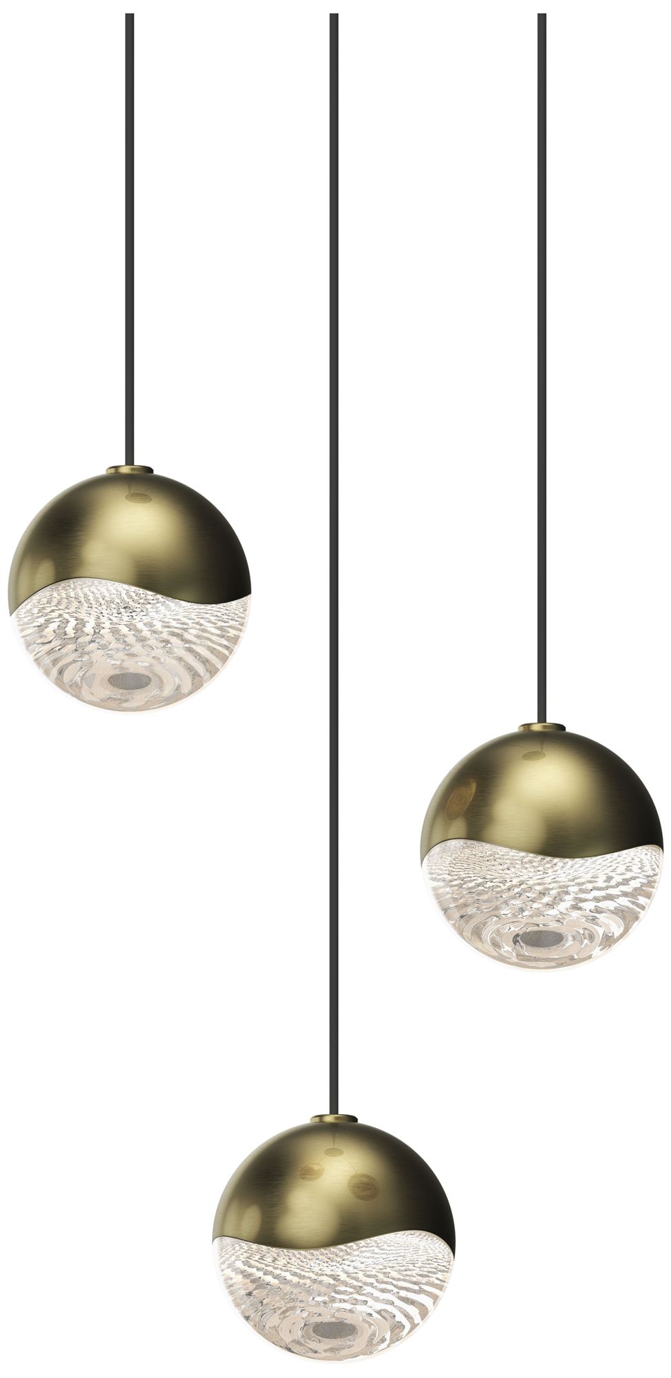 Grapes 7" Wide Round 3-Light Brass LED Pendant