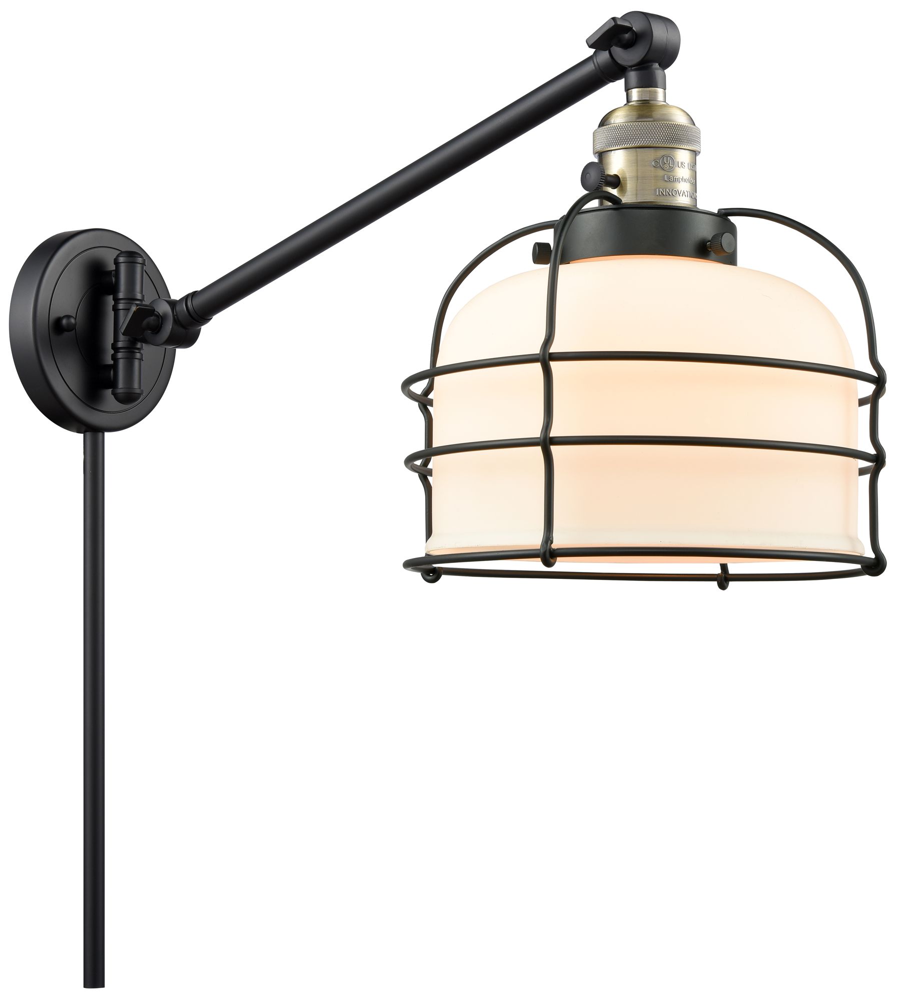Franklin Large Bell Cage 8" Black Brass Swing Arm w/ White Shade