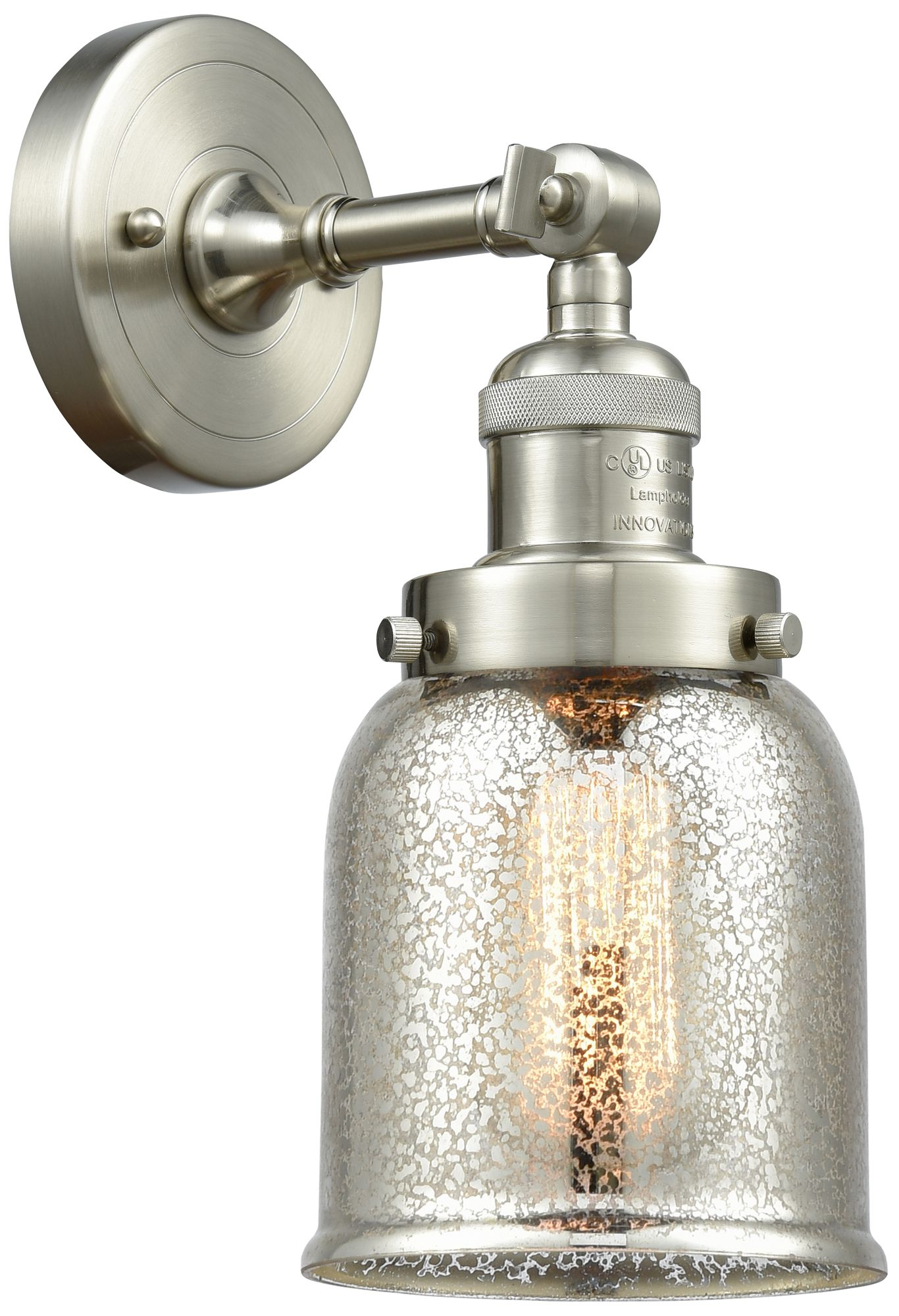 Franklin Restoration Small Bell 5" Brushed Nickel Sconce w/ Mercury Sh