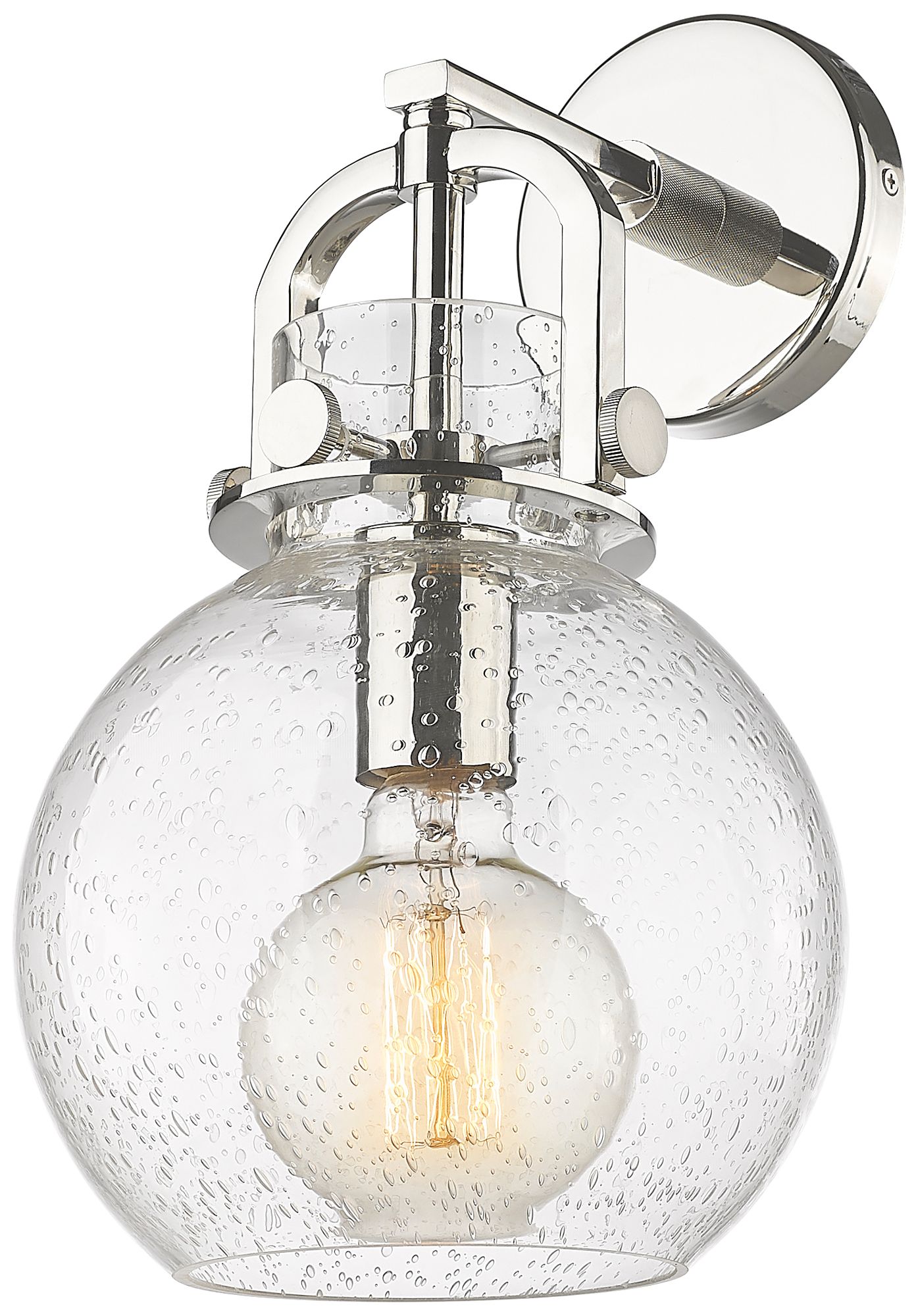 Newton Sphere 14" High Polished Nickel Sconce With Seedy Shade