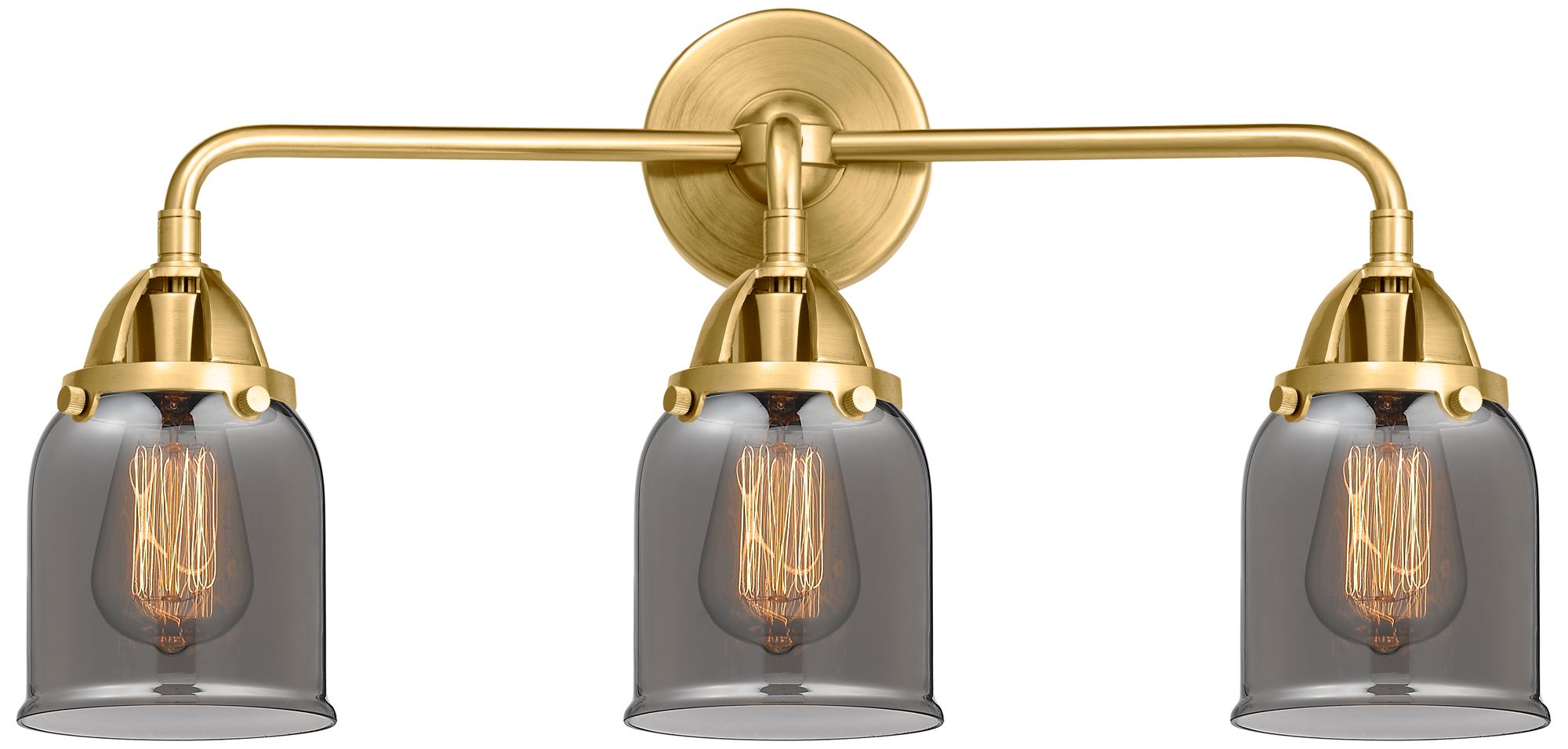 Nouveau 2 Bell 5" 3 Light 23" LED Bath Light - Satin Gold - Smoke