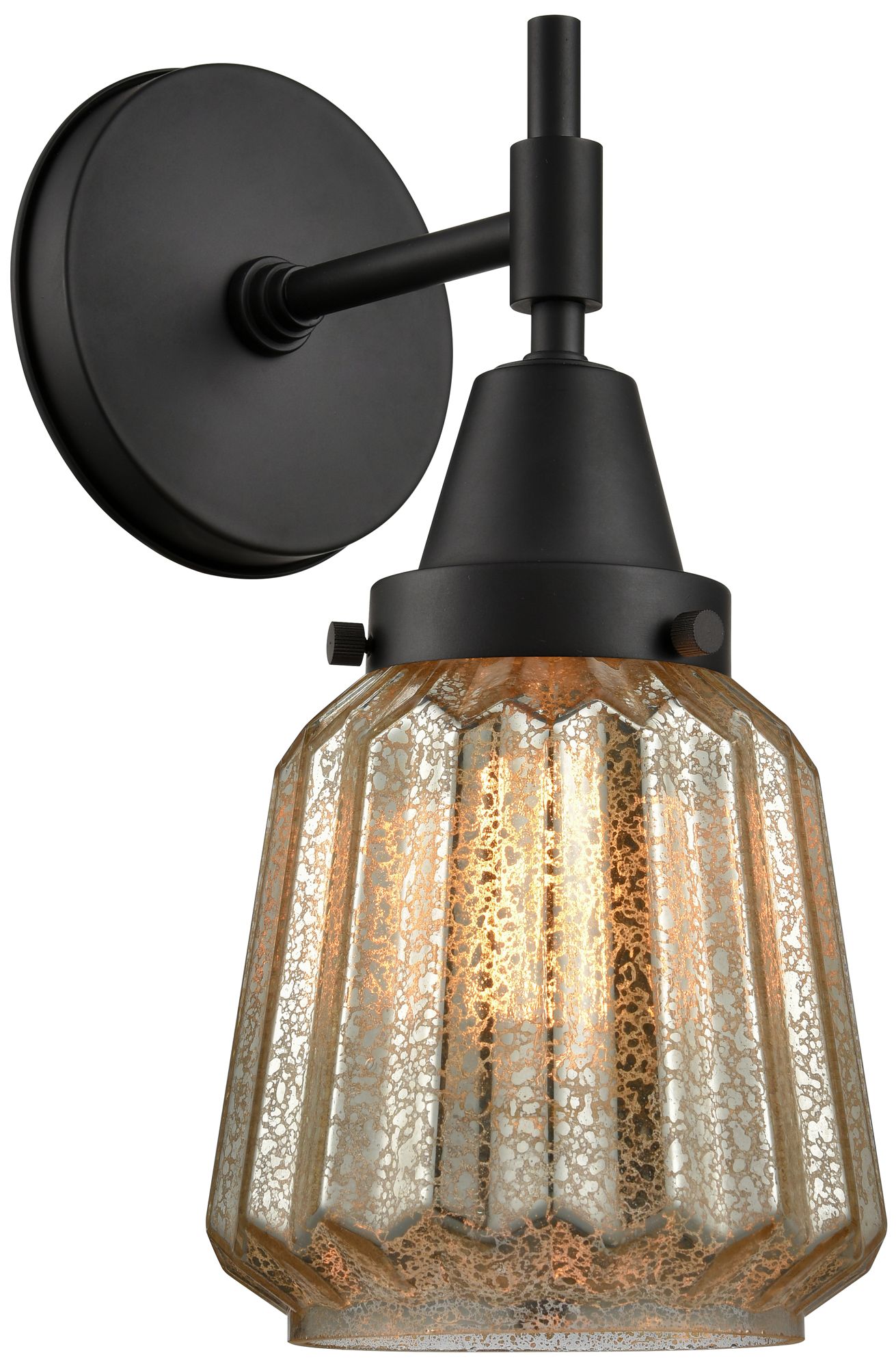 Caden Chatham 12" High Matte Black Sconce w/ Mercury Shade