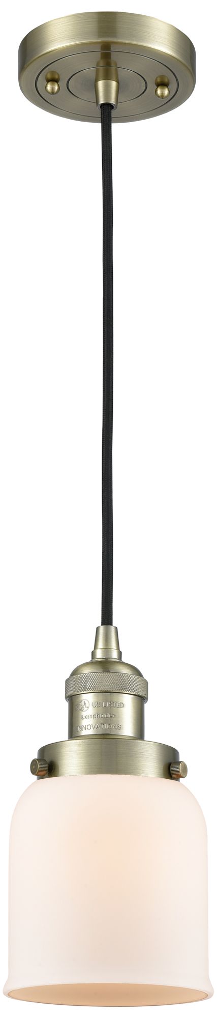 Franklin Restoration Bell 5" Brass Corded Mini Pendant w/ White Shade