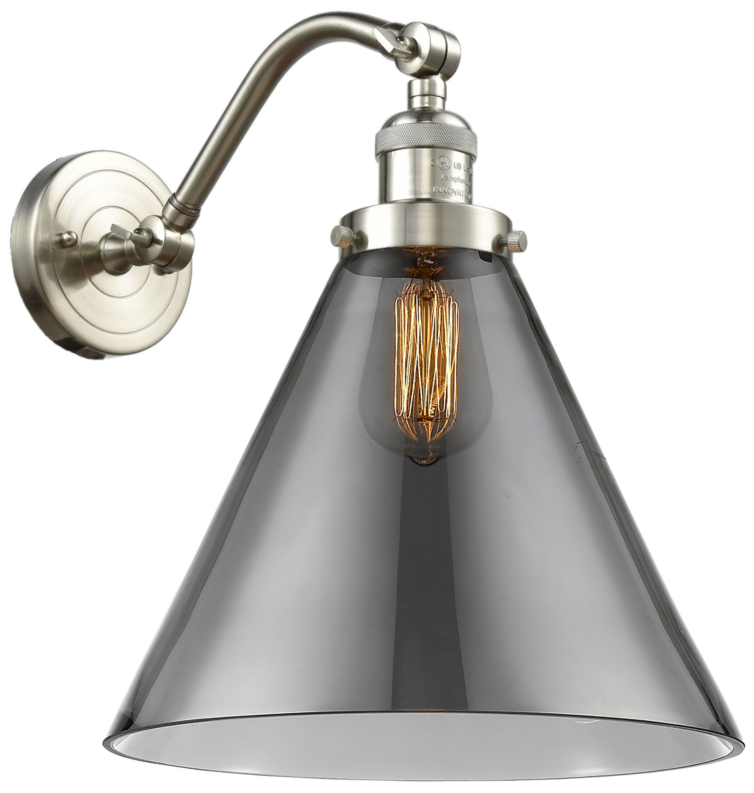 Cone 14" High Brushed Satin Nickel Sconce w/ Plated Smoke Shade