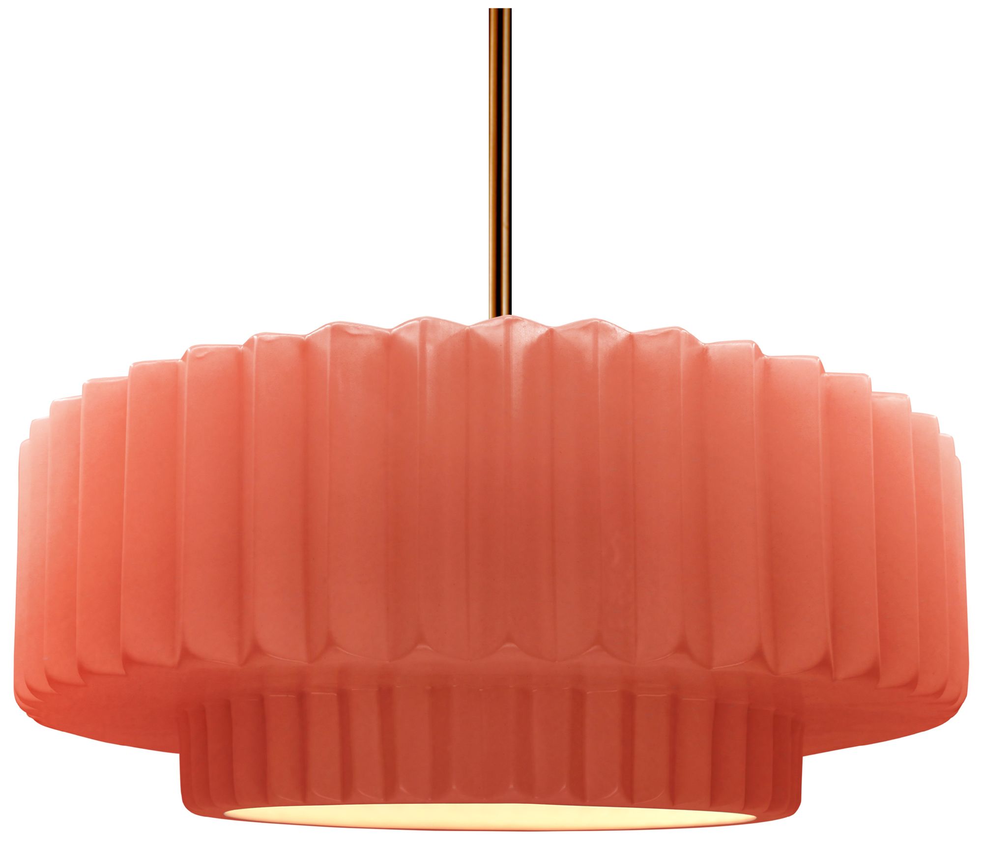 16.25"W Blush Frame Polished Brass Large Tier Pleated Stem LED Pendant