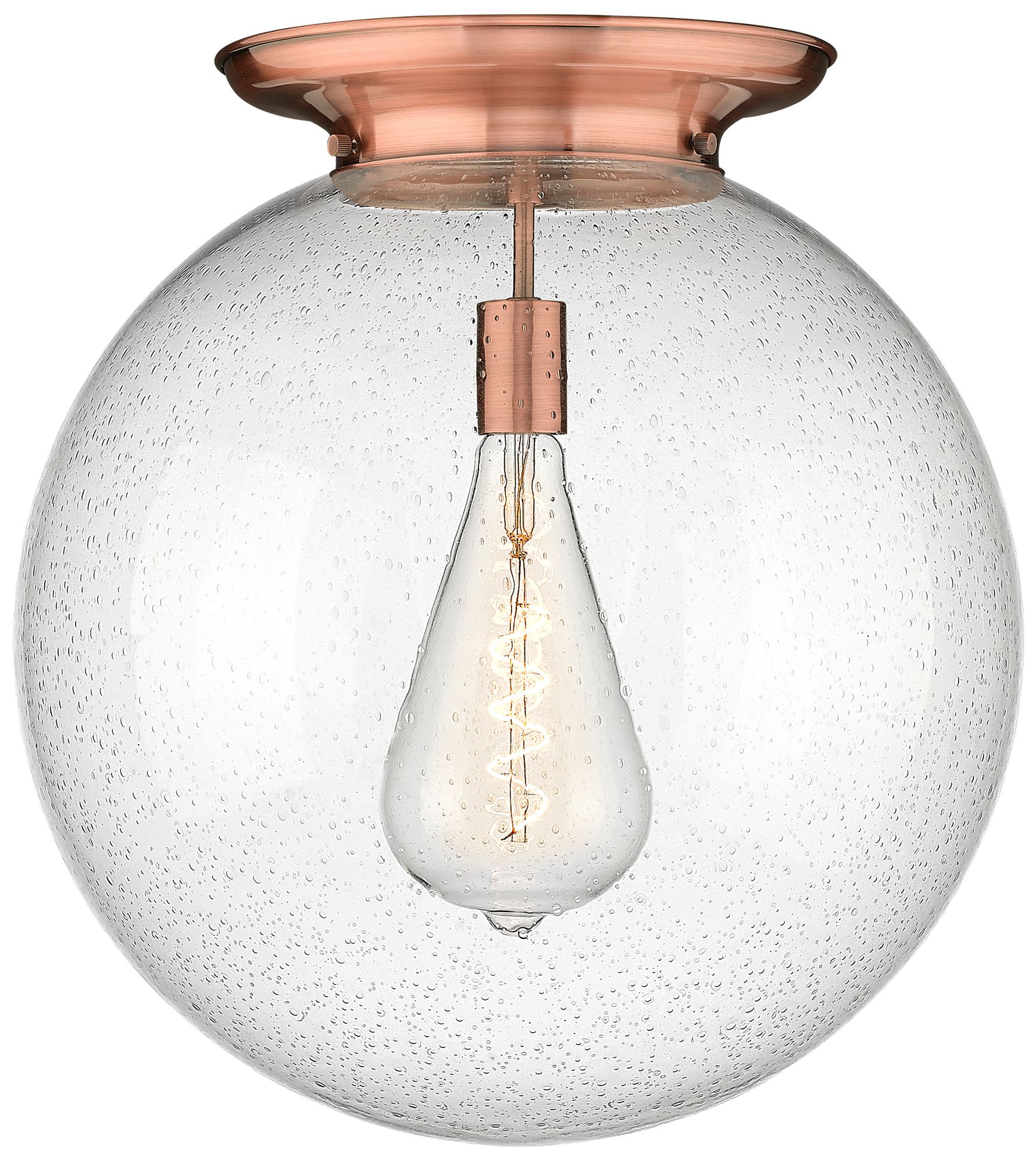 Beacon 17.75" Wide Antique Copper Flush Mount With Seedy Glass Shade