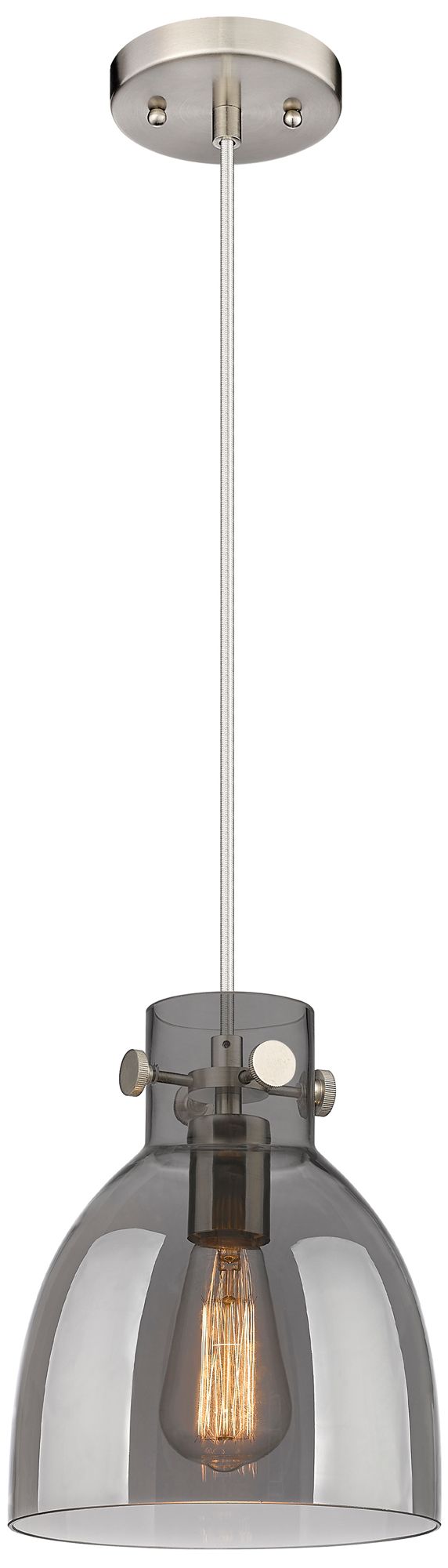 Newton Bell 8" Wide Satin Nickel Cord Hung Pendant With Plated Smoke S