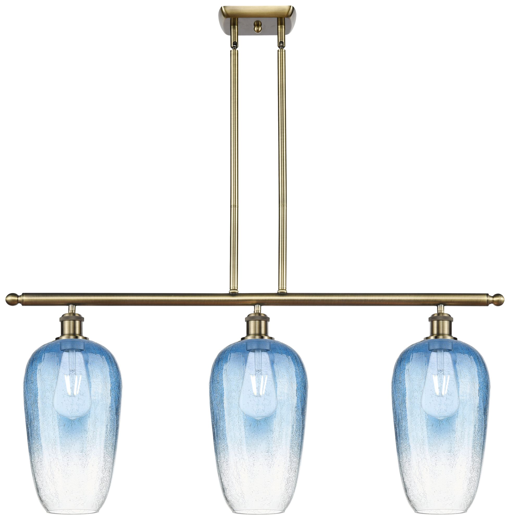 Brookhaven Flute 36"W 3-Light Brass Island Light w/ Sapphire Blue Shade