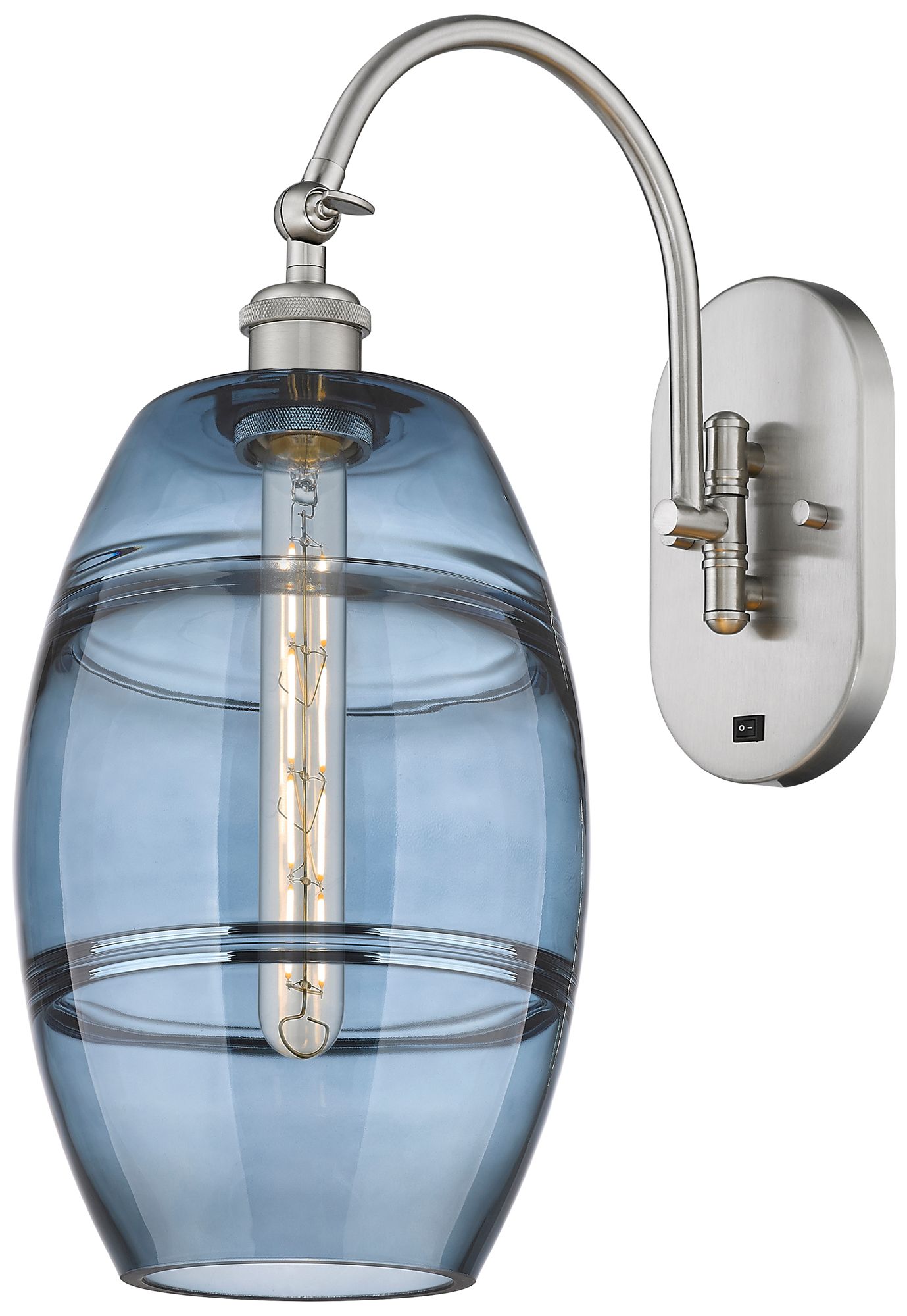 Ballston Vaz 13.38"H Satin Nickel Adjustable Sconce w/ Blue Shade