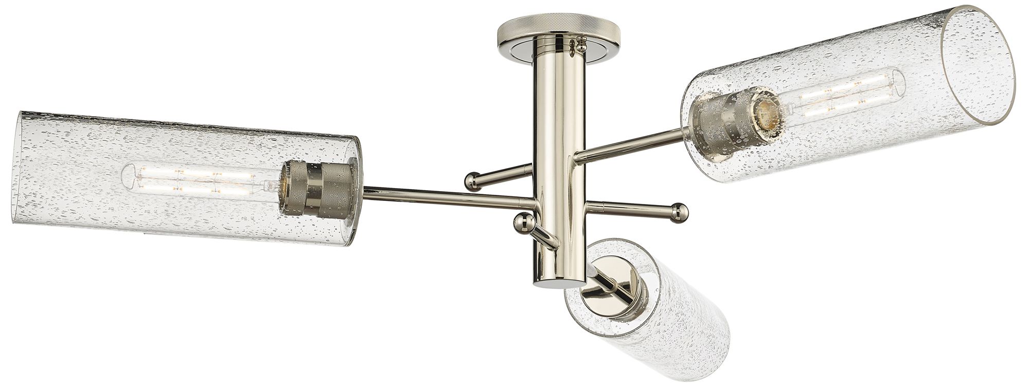 Crown Point 39.25"W 3 Light Polished Nickel Flush Mount With Seedy Sha
