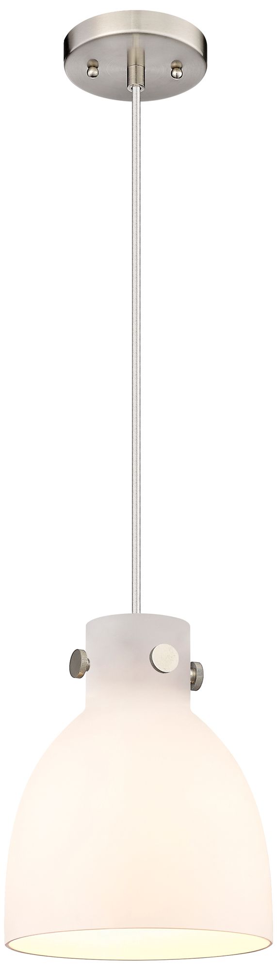 Newton Bell 8" Wide Satin Nickel Cord Hung Pendant With Matte White Sh
