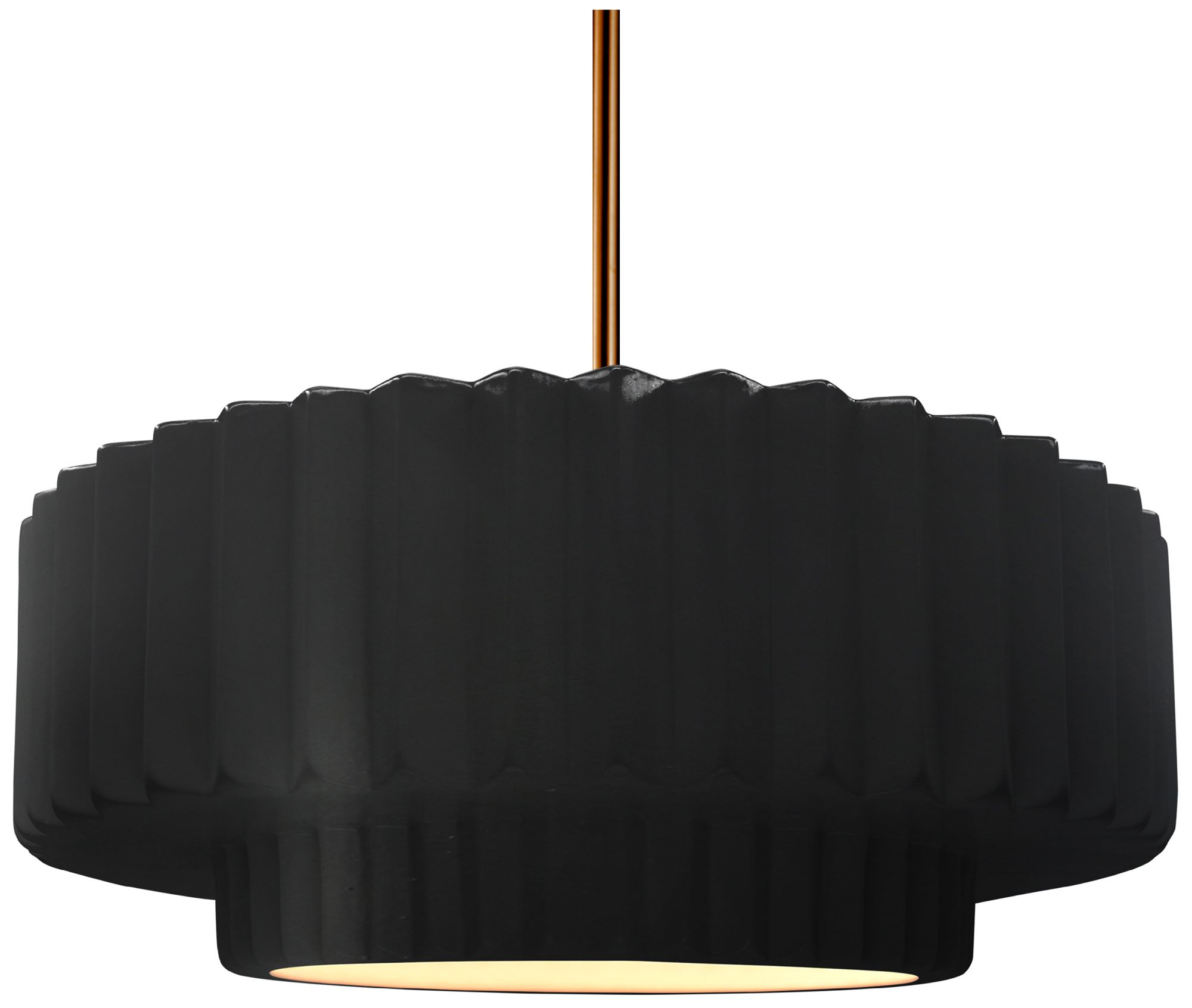 16.25"W Carbon Frame Polished Brass Large Tier Pleated Stem LED Pendan