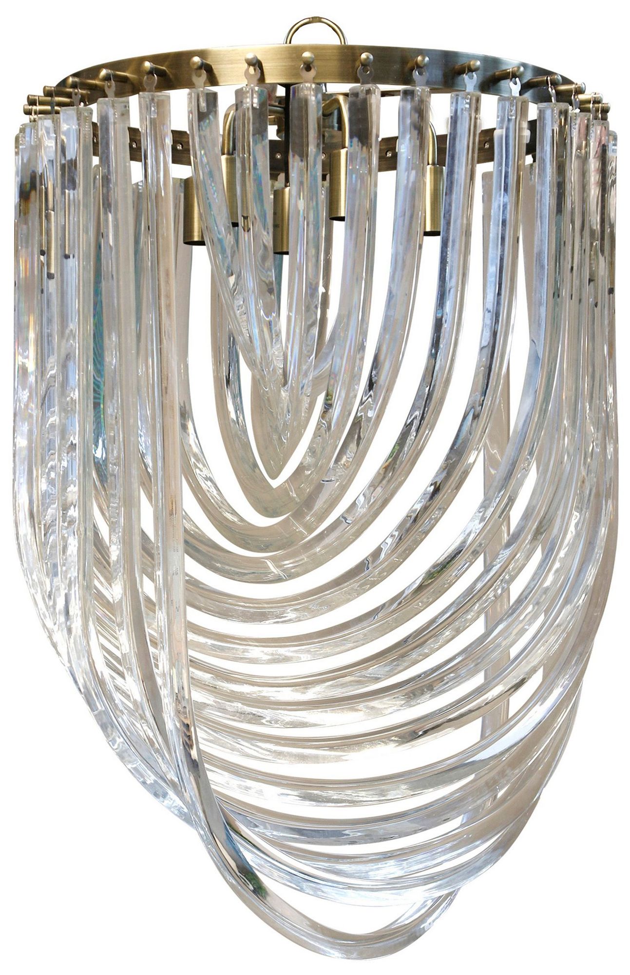 Ribbon 20" Large Clear Acrylic Brass Metal Chandelier