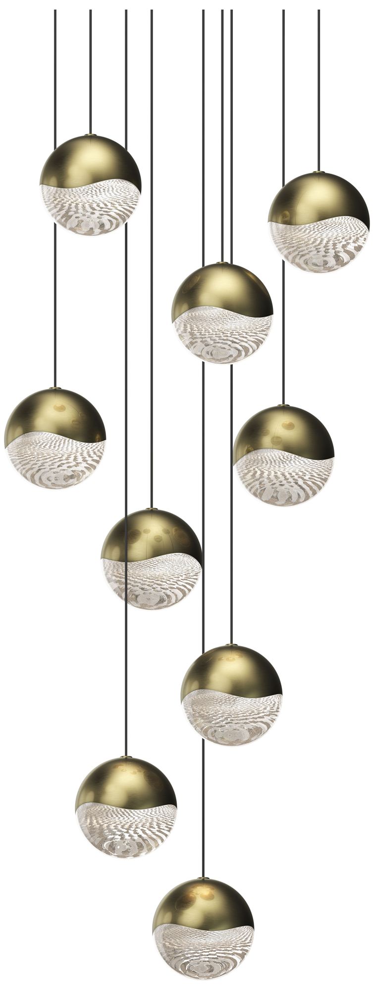 Grapes 13.75" Wide Round 9-Light Brass LED Pendant