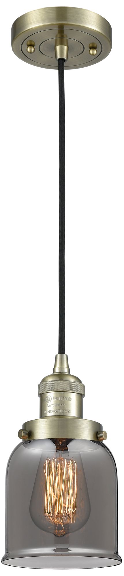 Franklin Restoration Bell 5" Brass Corded Mini Pendant w/ Smoke Shade