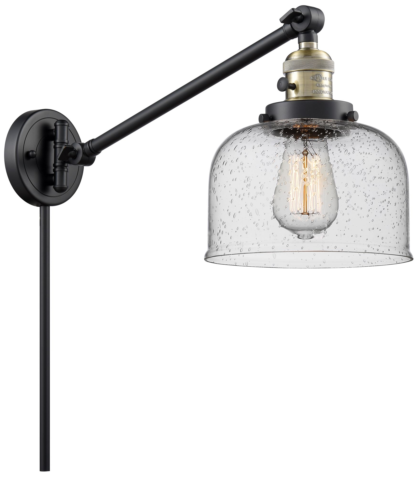 Franklin Restoration Bell 8" Black Antique Brass Swing Arm w/ Seedy Sh