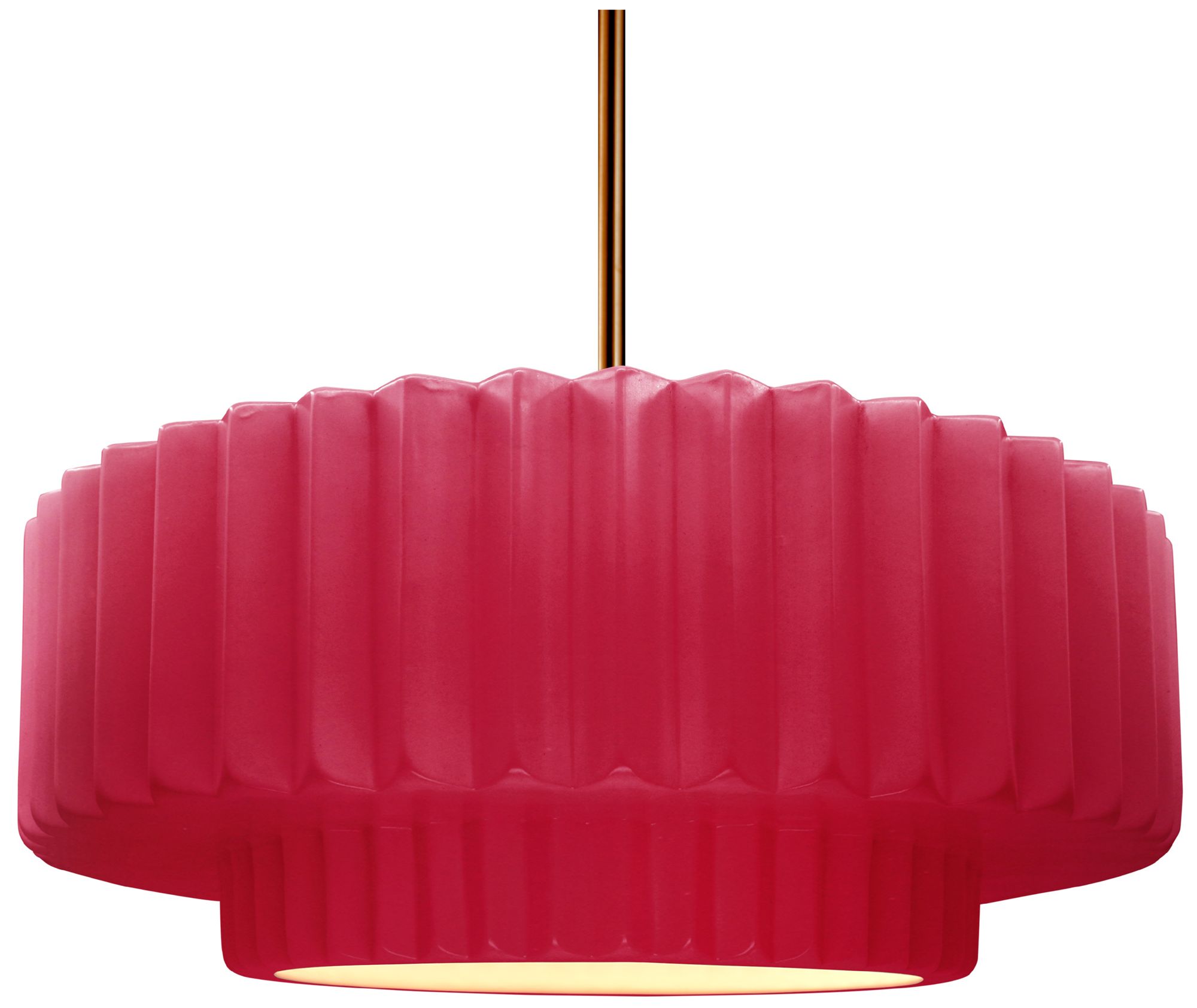 16.25"W Cerise Frame Polished Brass Large Tier Pleated Stem LED Pendan