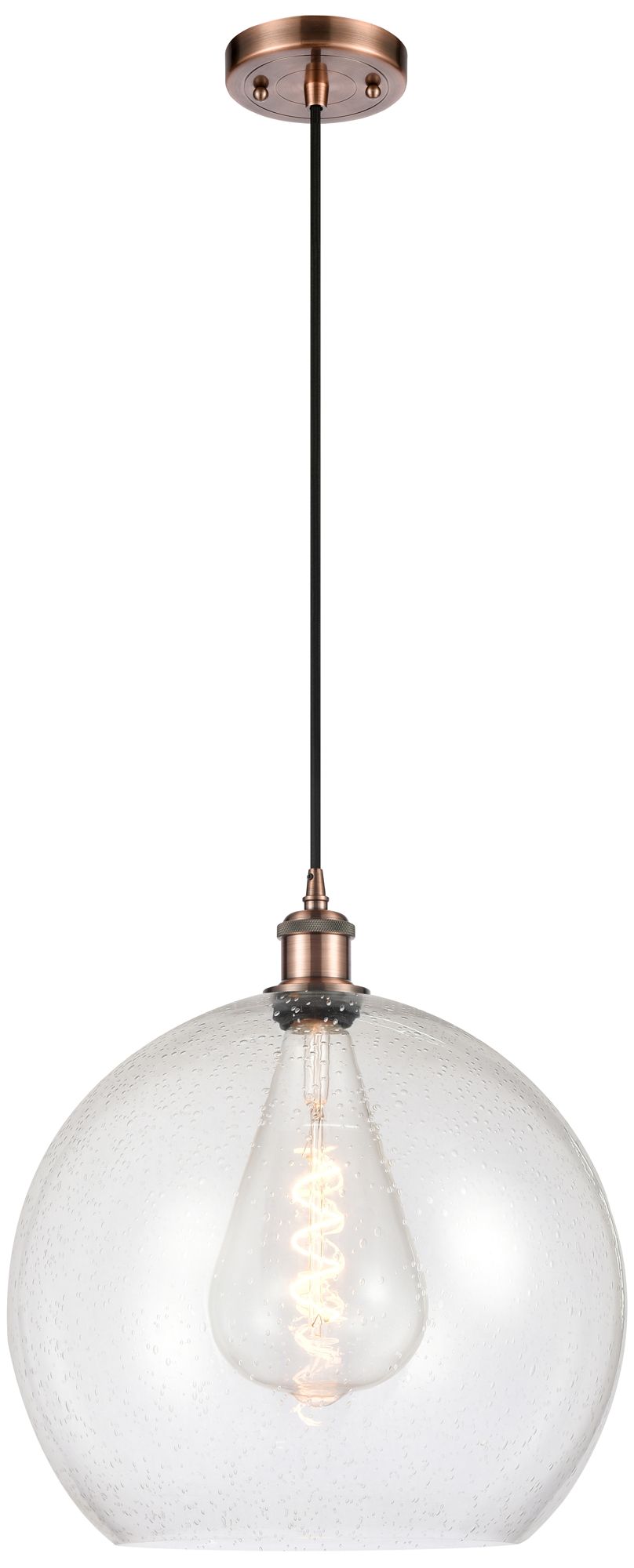 Ballston Athens 14" Antique Copper LED Pendant With Seedy Shade