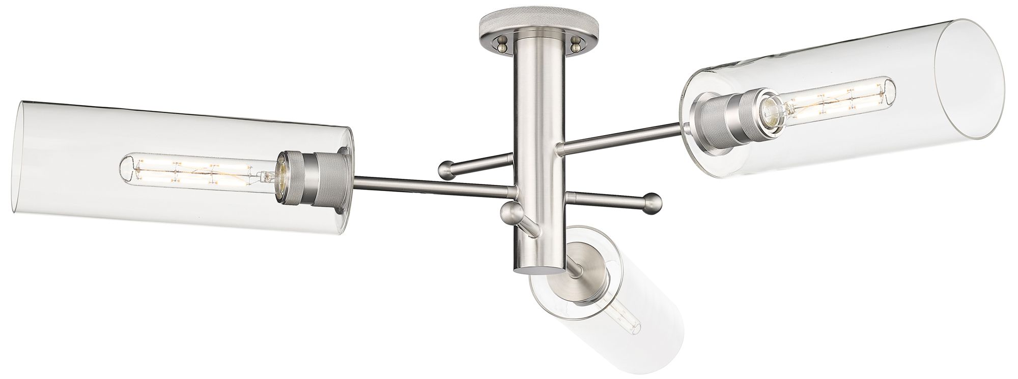 Crown Point 39.25" Wide 3 Light Satin Nickel Flush Mount With Clear Sh