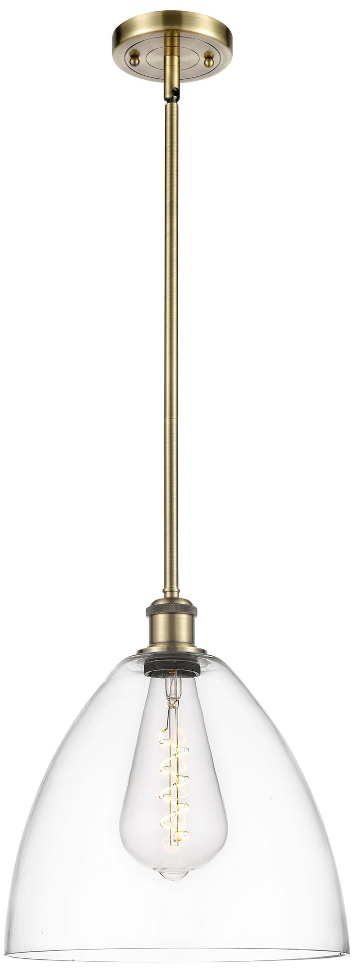 Bristol Glass 12" LED Mini Pendant - Antique Brass - Clear Shade
