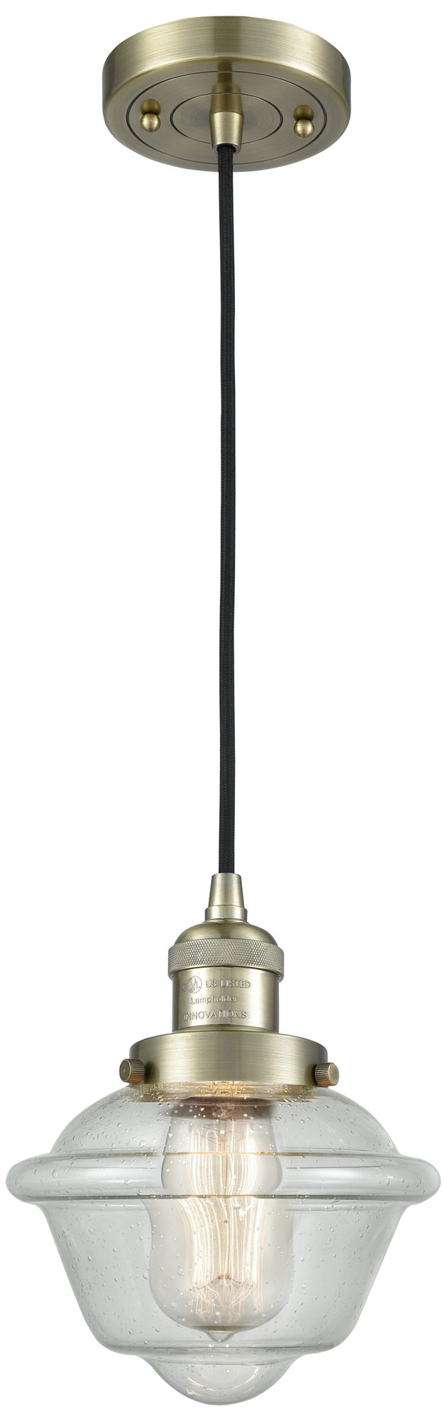 Franklin Restoration Oxford 8" Brass Corded Mini Pendant w/ Seedy Shad