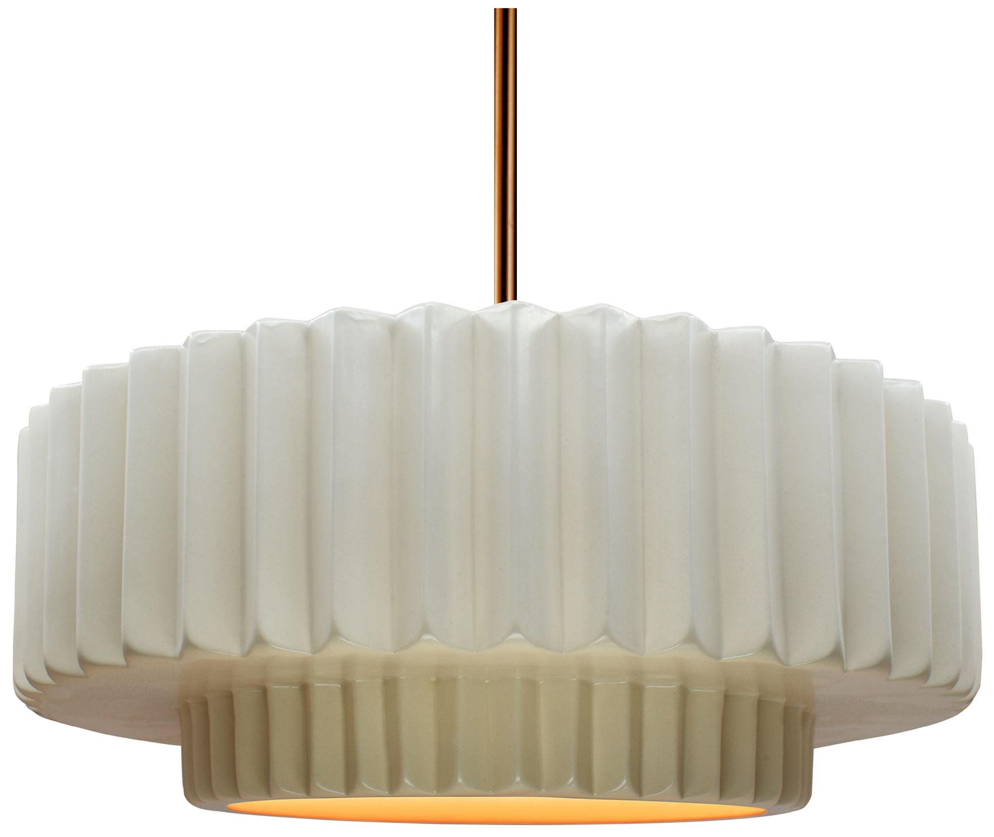 16"W White/Gold Frame Polished Brass Large Tier Pleated Stem LED Penda