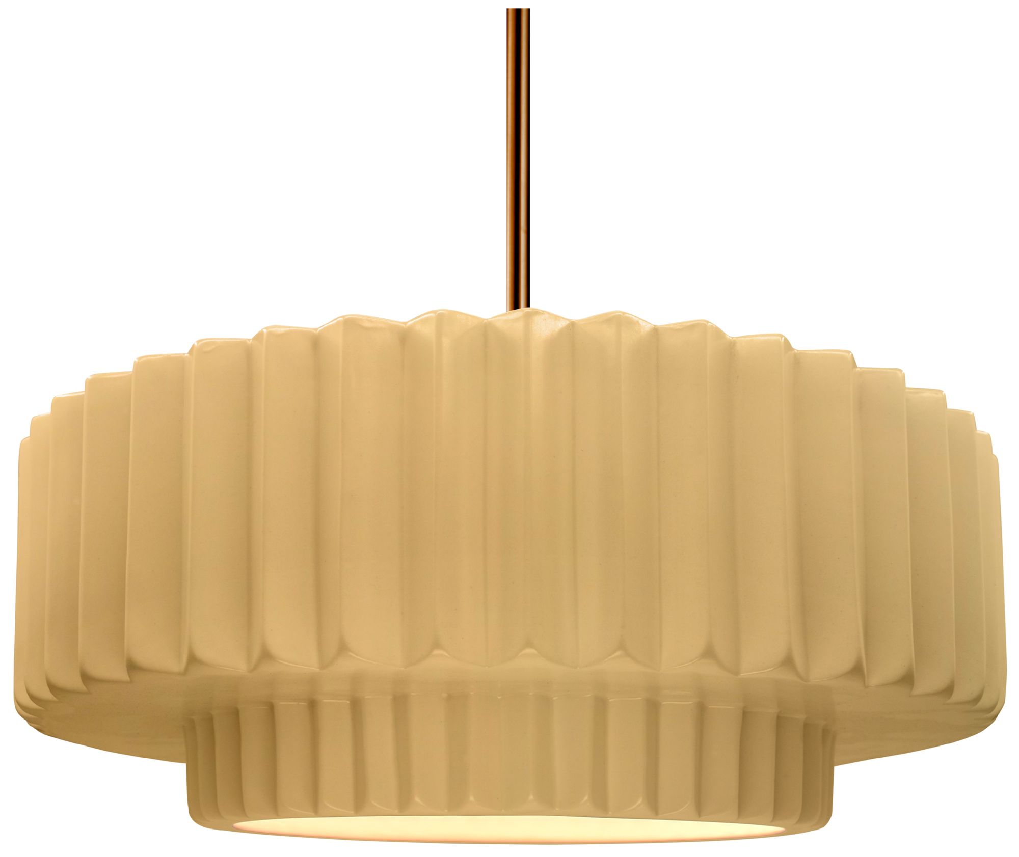 16.25"W Yellow Frame Polished Brass Large Tier Pleated Stem LED Pendan