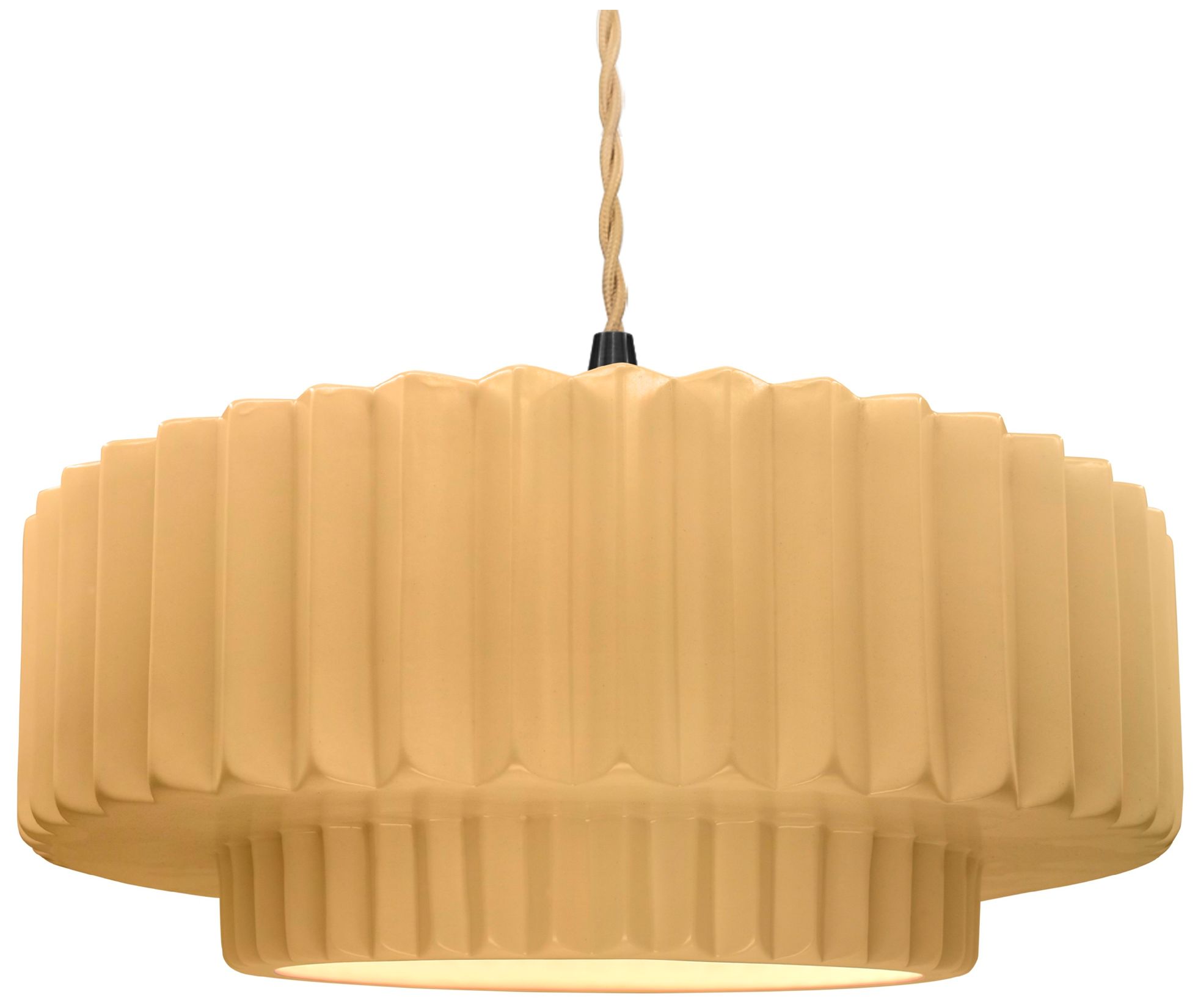 16.25"W Yellow Frame Matte Black Large Tier Pleated Twisted LED Pendan