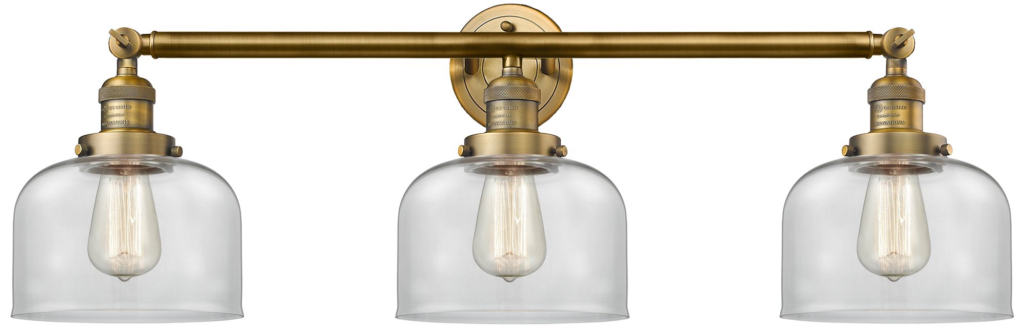 Bell 32" Wide 3 Light Brushed Brass Bath Vanity Light w/ Clear Shade
