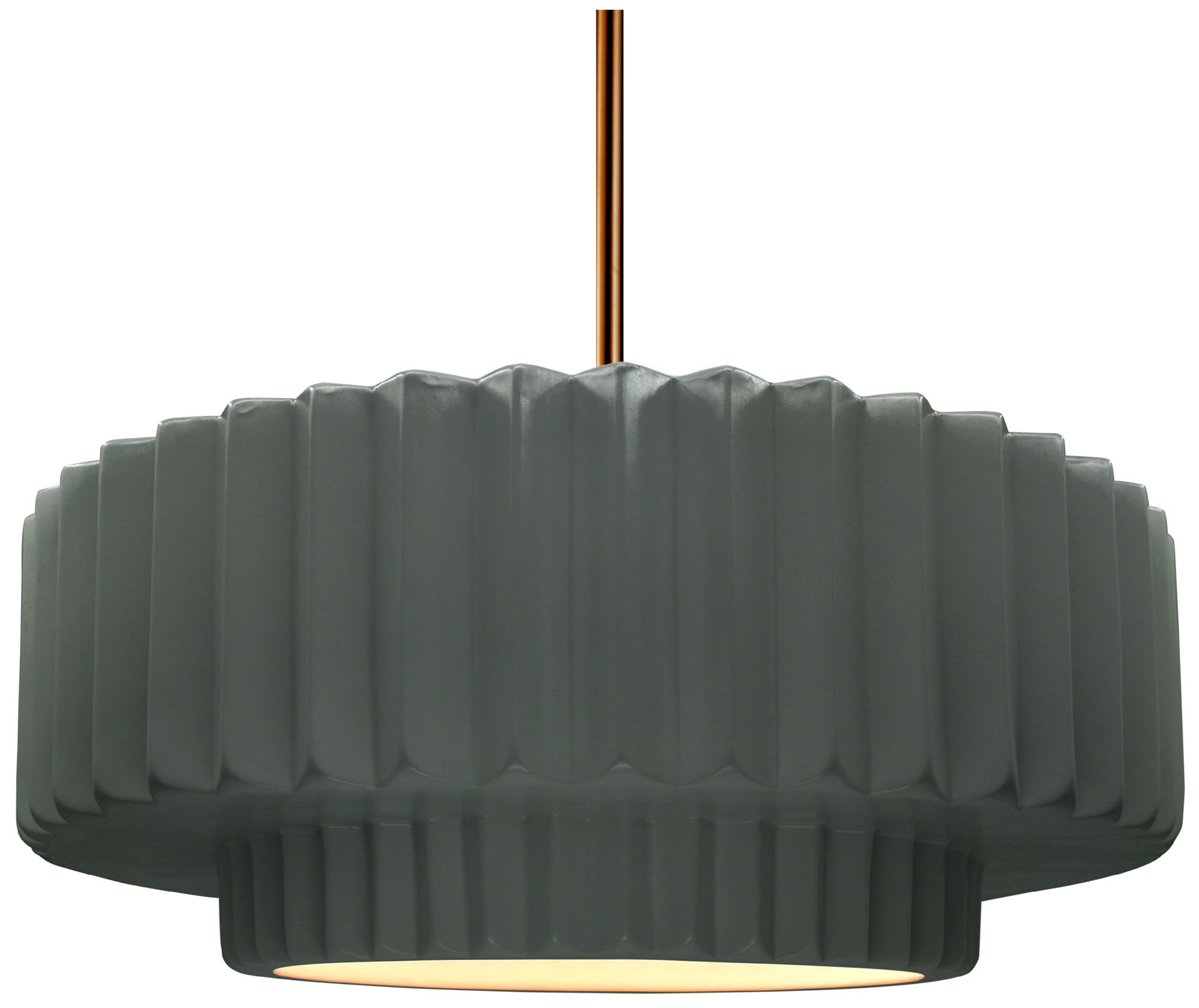 16"W Pewter Green Frame Polished Brass Large Tier Pleated Stem LED Pen