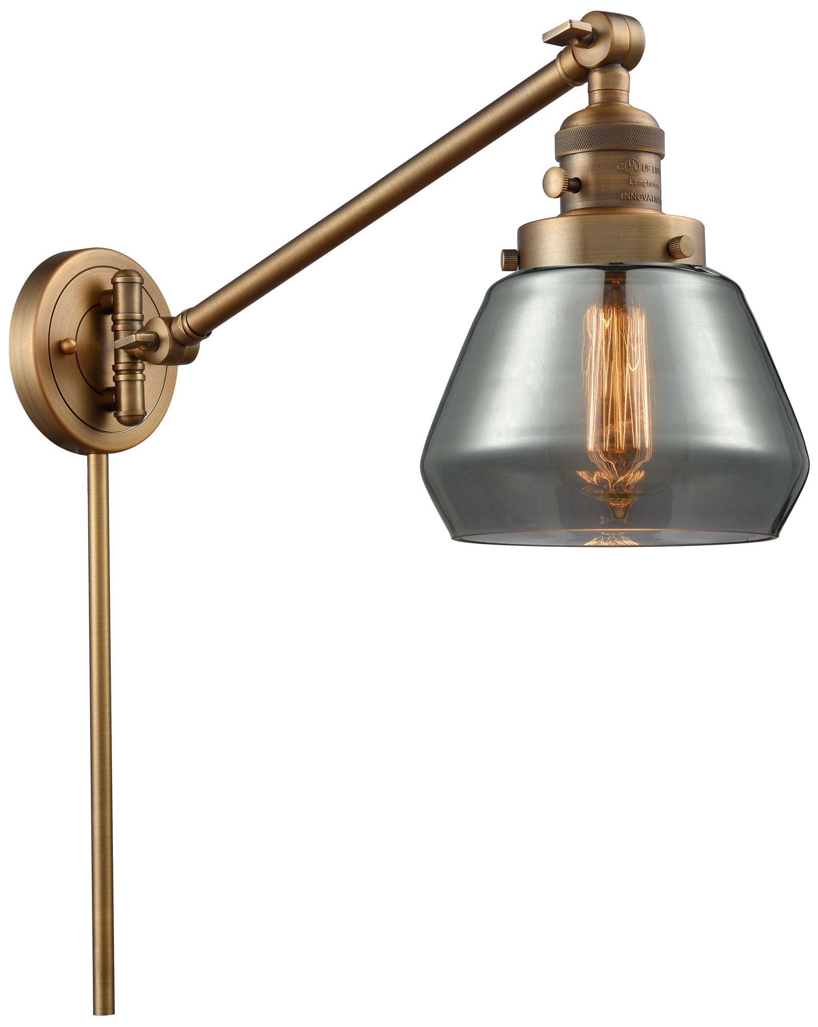 Fulton 8" Brushed Brass Swing Arm w/ Plated Smoke Shade