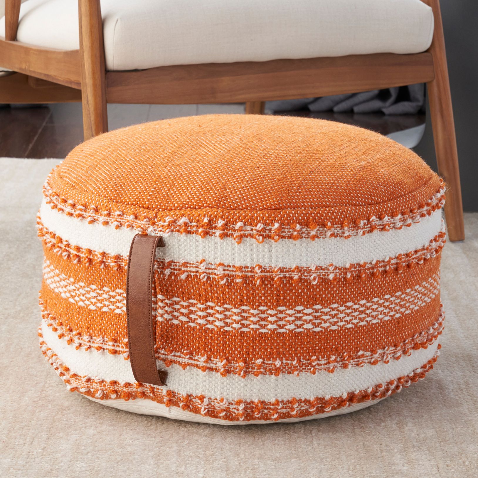 Itzel Orange White Stripes Indoor/Outdoor Round Pouf Ottoman