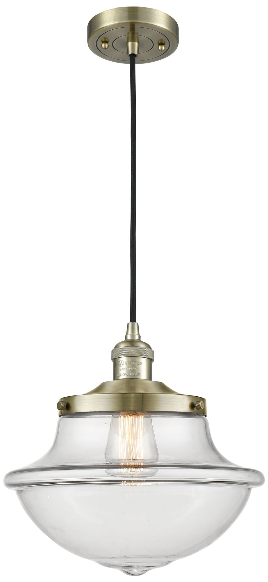Franklin Restoration Oxford 12" Brass Corded Mini Pendant w/ Clear Sha