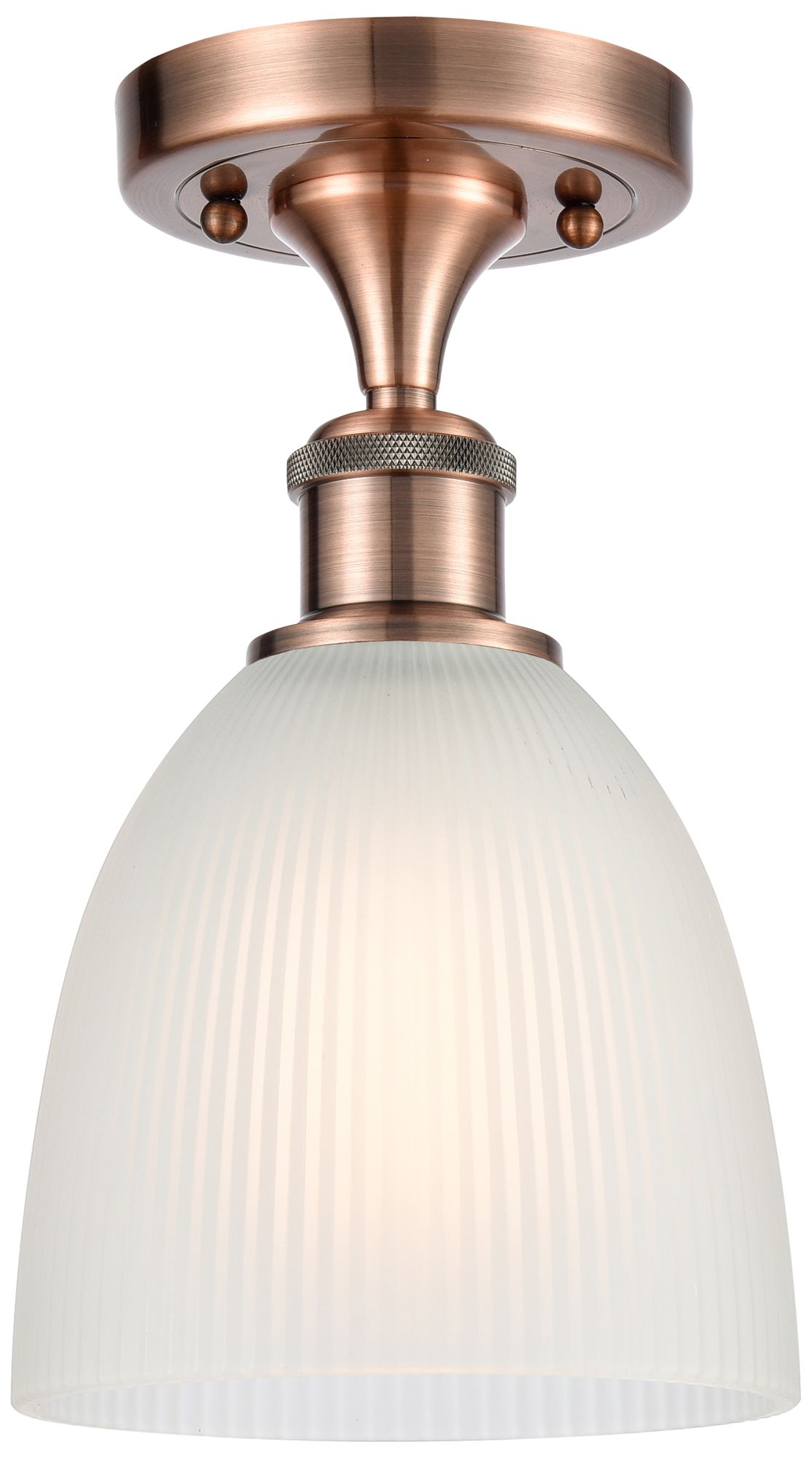 Castile 6" Wide Copper Semi Flush Mount w/ White Shade