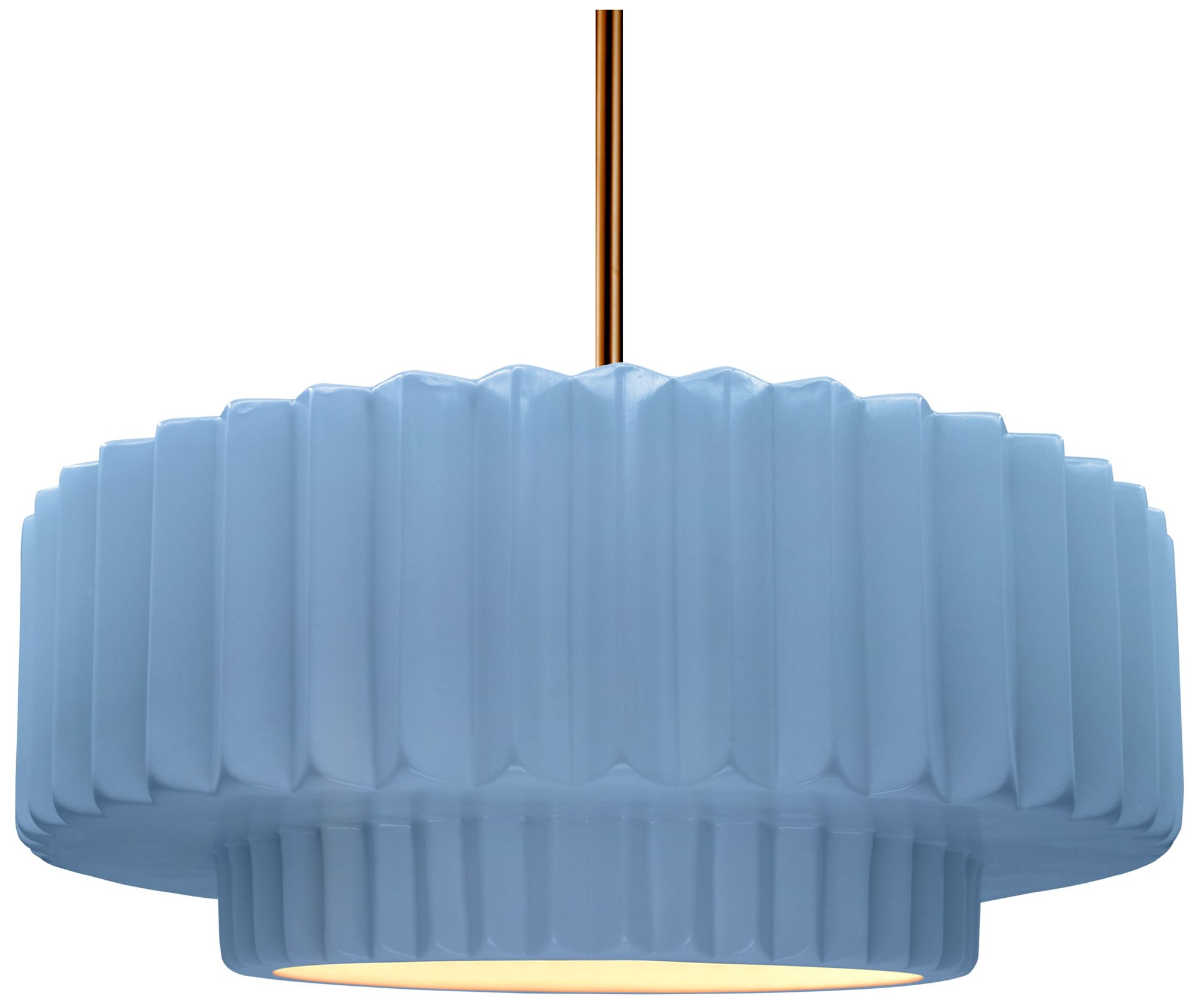 16.25"W Sky Blue Frame Polished Brass Large Tier Pleated Stem LED Pend