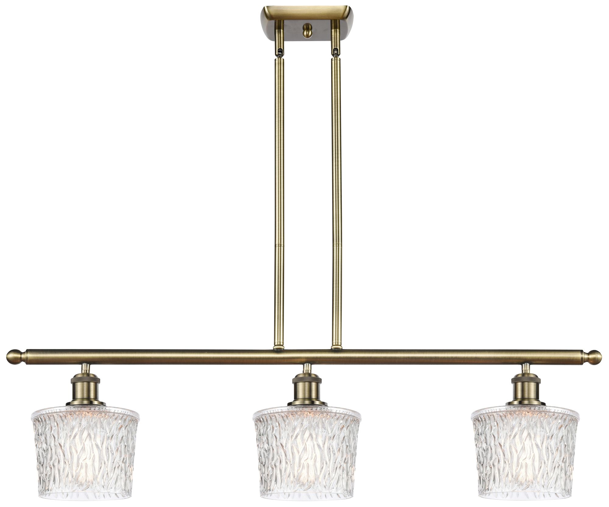 Niagra 3 Light 36" LED Island Light - Antique Brass - Clear Shade
