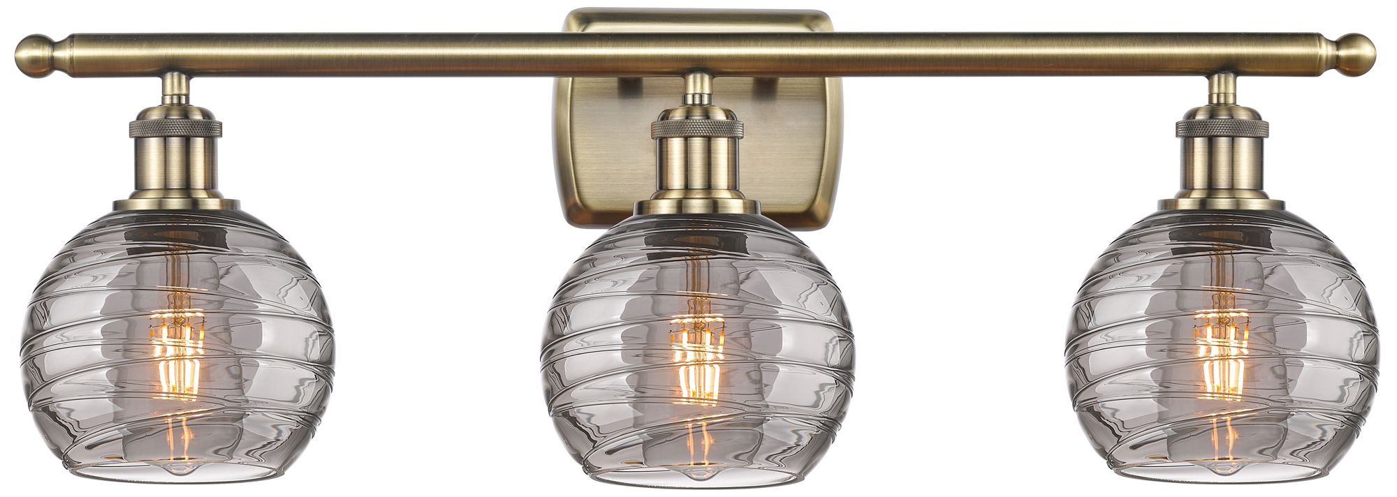 Ballston Athens 26"W 3 Light Antique Brass Bath Bar w/ 6" Smoke S