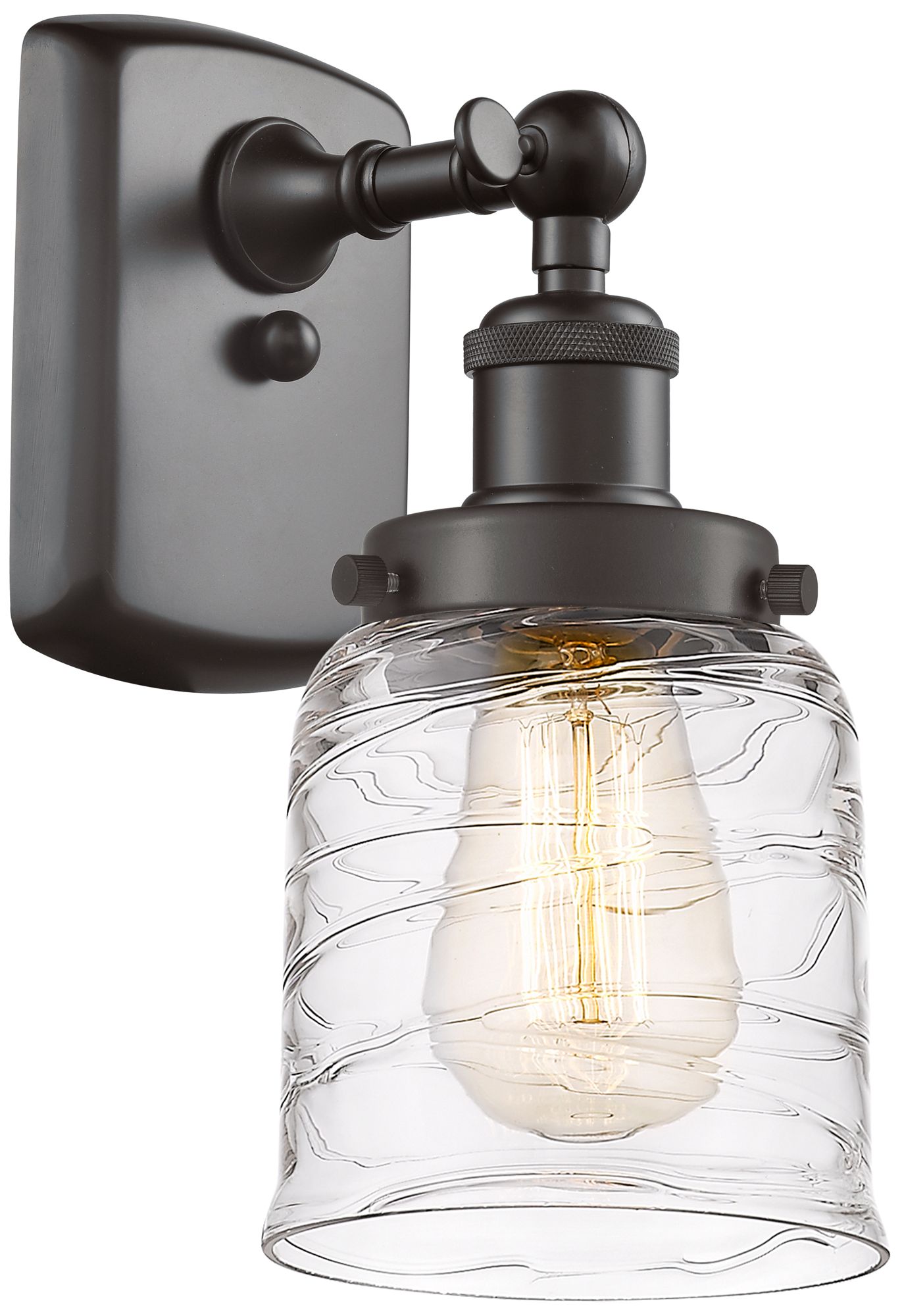 Ballston Urban Bell 5" Incandescent Sconce - Bronze - Deco Swirl Shade