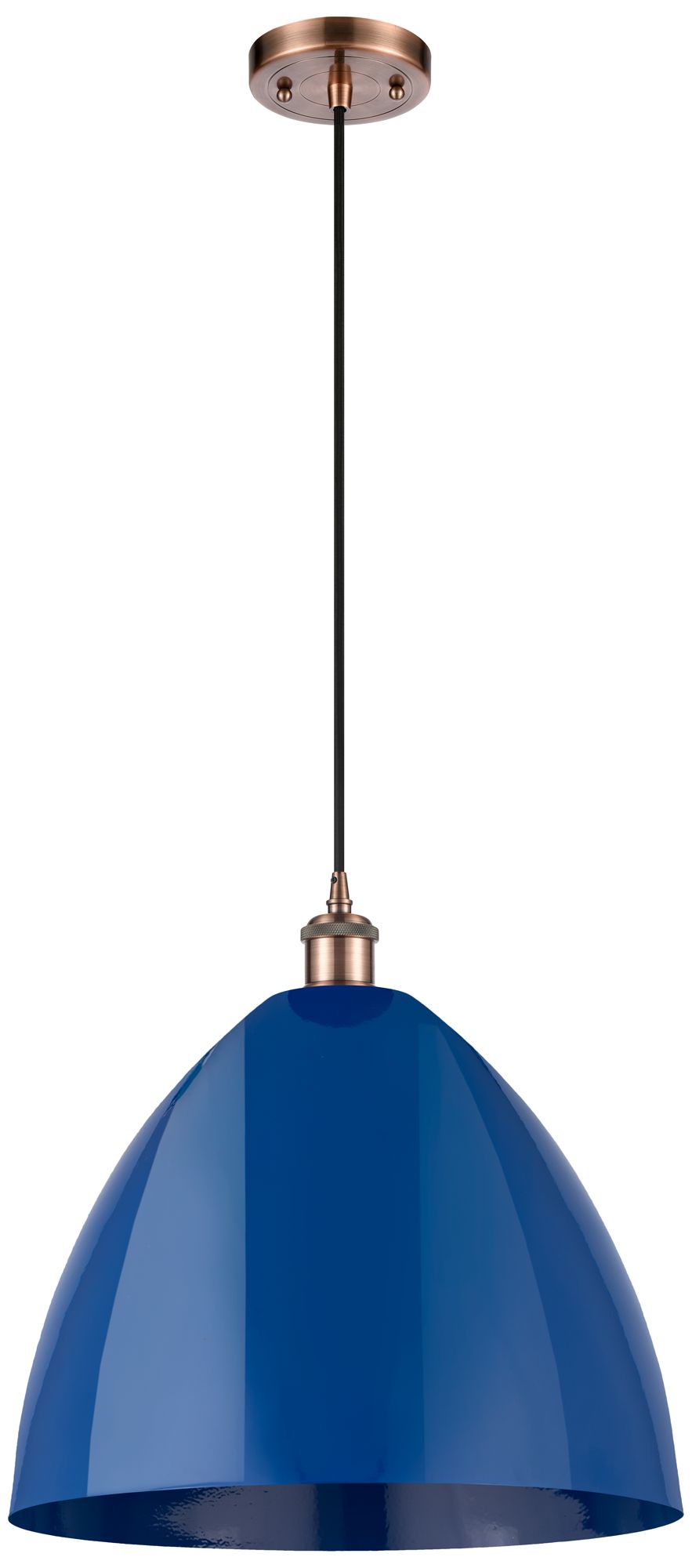 Ballston Plymouth Dome 16" Wide Copper Corded Mini Pendant w/ Blue Sha