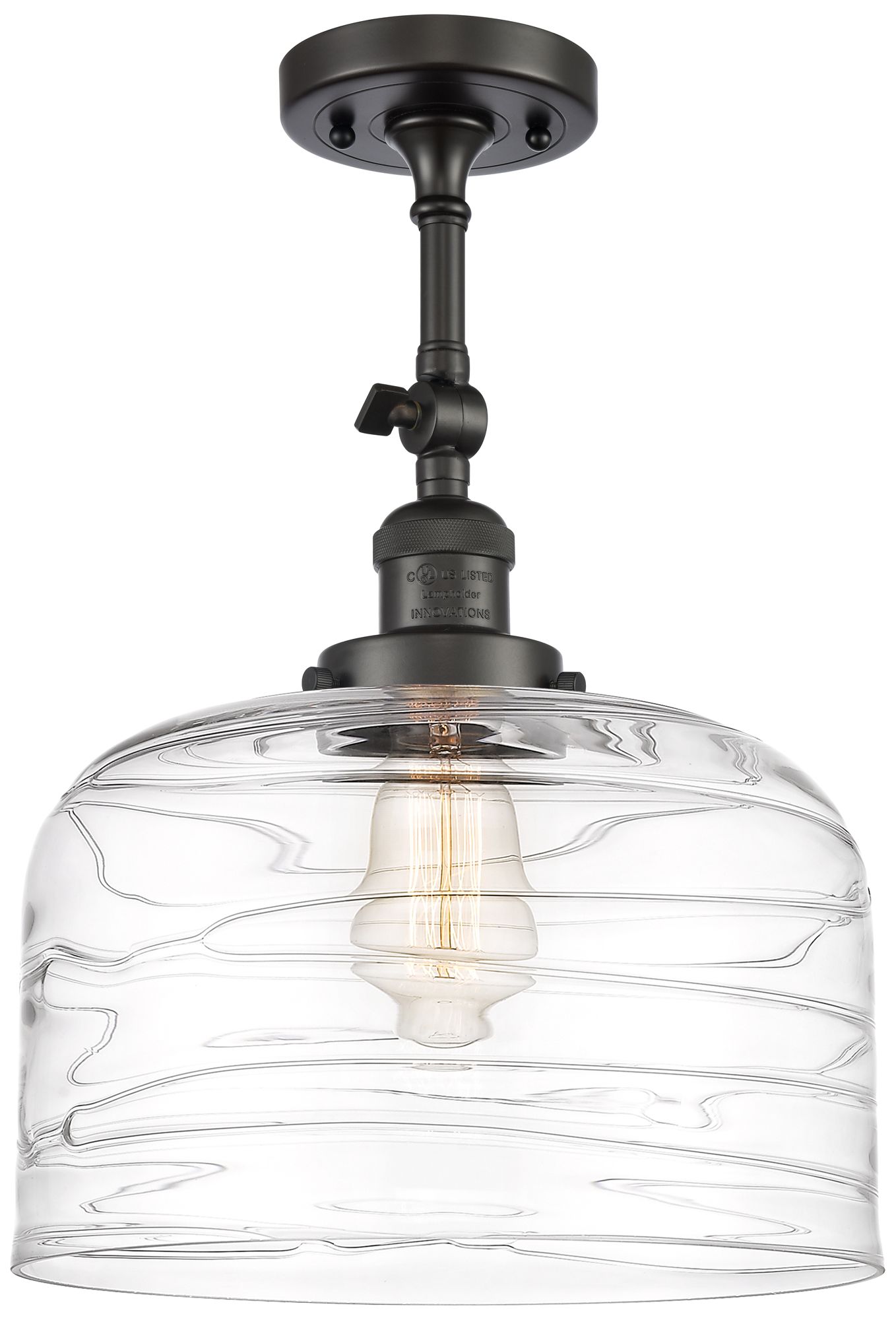 Franklin Restoration Bell 12" Bronze LED Semi-Flush w/ Swirl Shade